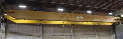 CLASS ................ C CAPACITY ............. 20 TON (40,000 LBS) SPAN ................. 100'0" CONSTRUCTION ......... DOUBLE BOX GIRDER; TOP RUNNING BRIDGE & HOIST TOP RUNNING HOIST .... C-E2BP 1650 H20 L4/1 F10 LIFTING SPEED ........ 24 AND 2.4 FPM LIFT ................. 32'6" MAXIMUM HOIST MOTOR .......... 38.6 HP TROLLEY SPEED ........ 100/30 FPM TROLLEY MOTORS ....... 2 MOTORS AT 1.1 HP EACH BRIDGE SPEED ......... 320/160 FPM BRIDGE MOTORS ........ 2 MOTORS AT 8.9 HP EACH CABLE SYSTEM ......... FESTOONED PENDANT CONTROL ...... YES HEADROOM ............. 73" (TOP OF RAIL TO TOP OF CRANE) |