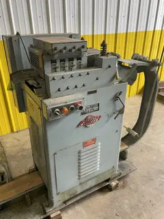 CAPACITY ............. 8" X .018" WIDTH ................ 8" MAXIMUM THICKNESS ............ .010" - .040" STRAIGHTENER ......... 9 ROLL ENTRY PINCH ROLLS ... 3.5" OD X 9" LENGTH STRAIGHTENING ROLLS .. 4 OVER 5; 2" OD X 9" LENGTH EXIT GUIDE ROLLS ..... 2" OD X 11.5" LENGTH MOTORIZED ............ VARIABLE SPEED DRIVE |