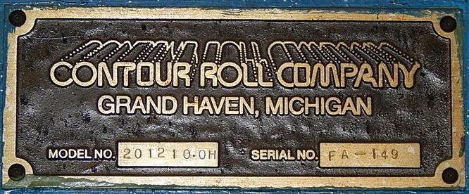 Model: 201210-0H Specifications: Stands: 12 Spindle diameter: 2" with 3/8" key Roll space: 10" Horizontal center: 12" Vertical: 5.5" - 7" Floor to top of base: 35" with I-beam, 27" without Base to centerline of lower shaft: 7" Direction: Right to left Motor: 20 H.P. Voltage: 440 volt 3 phase Dimensions: 184" x 78" x 85" Equipped with: 3-axis exit straightener Vari-speed AC drive Equal geared Tooled for part approx: 3" x 1" x 1-1/4" x 16ga. LCS |
