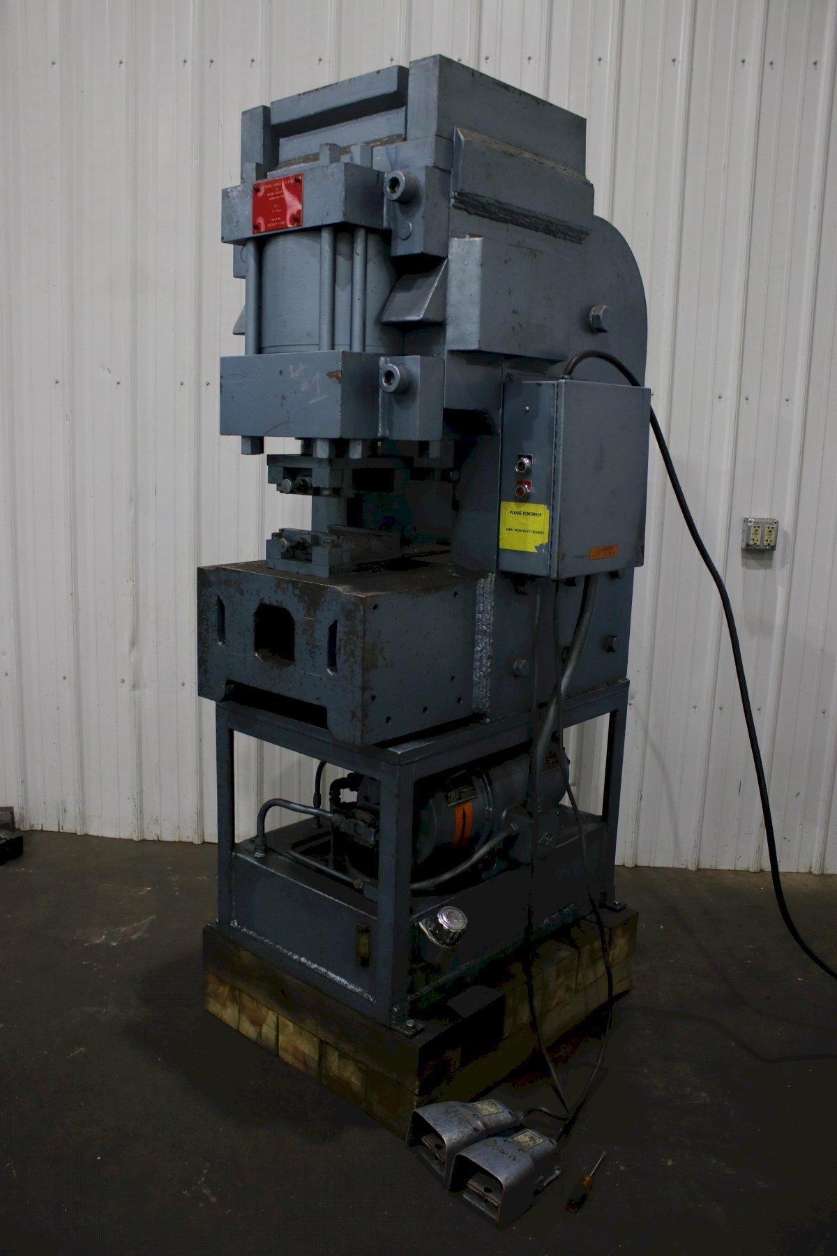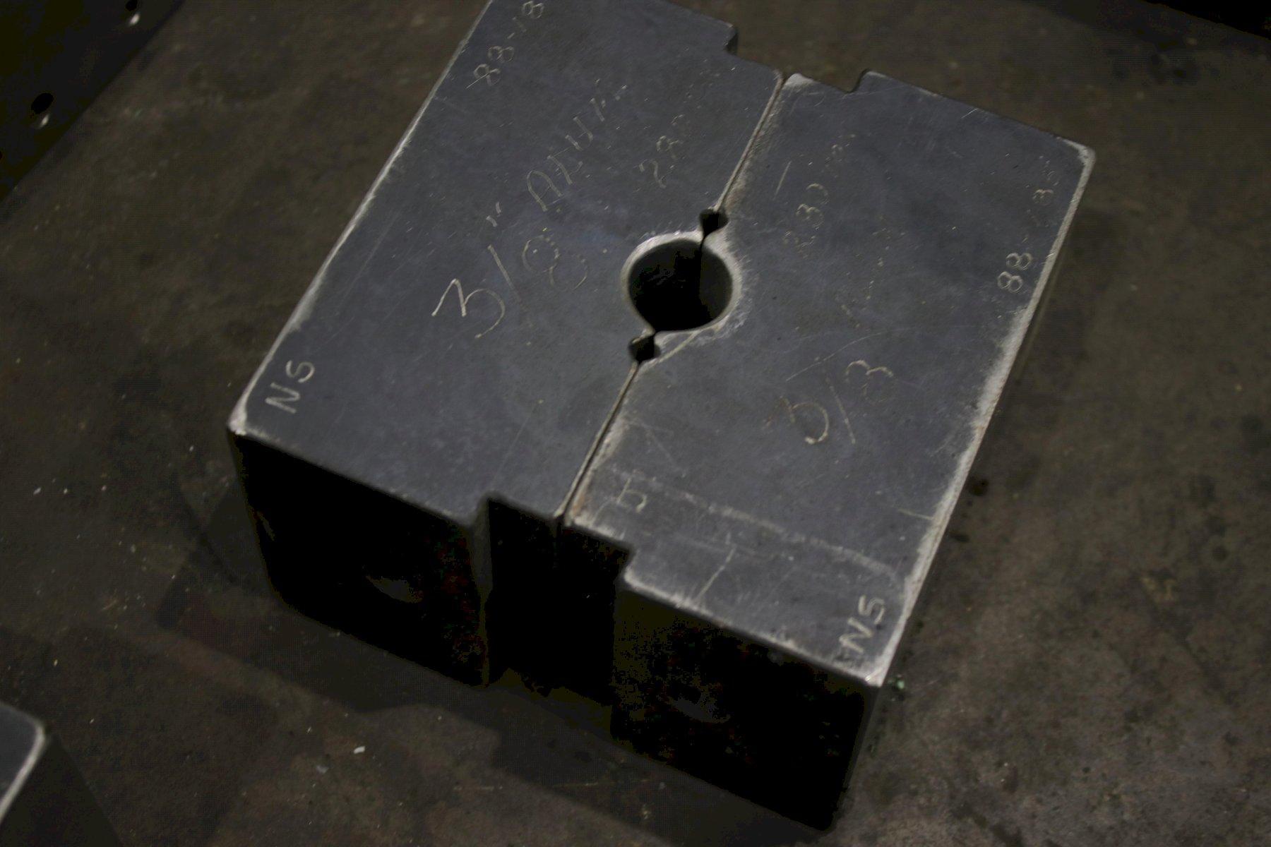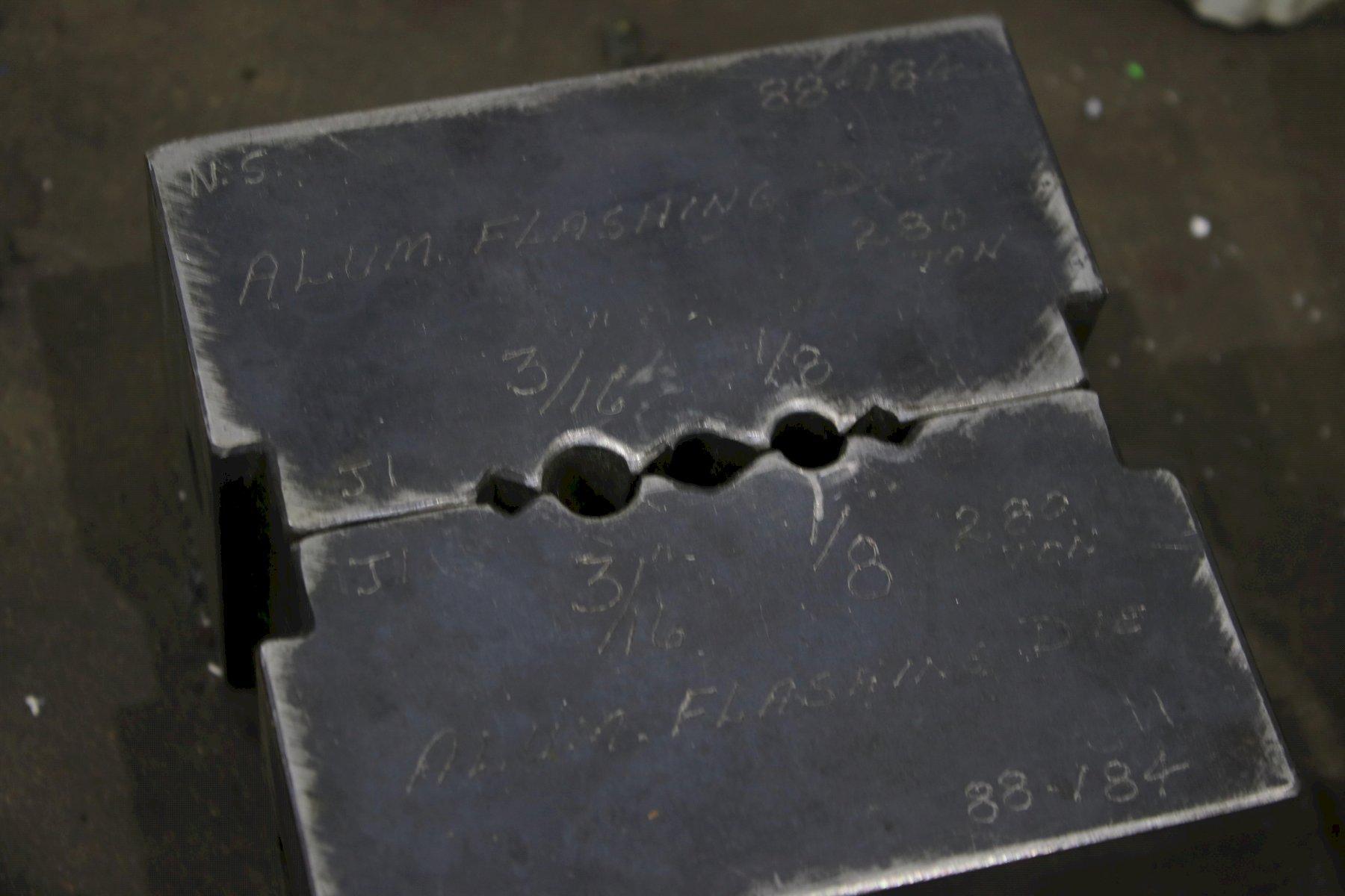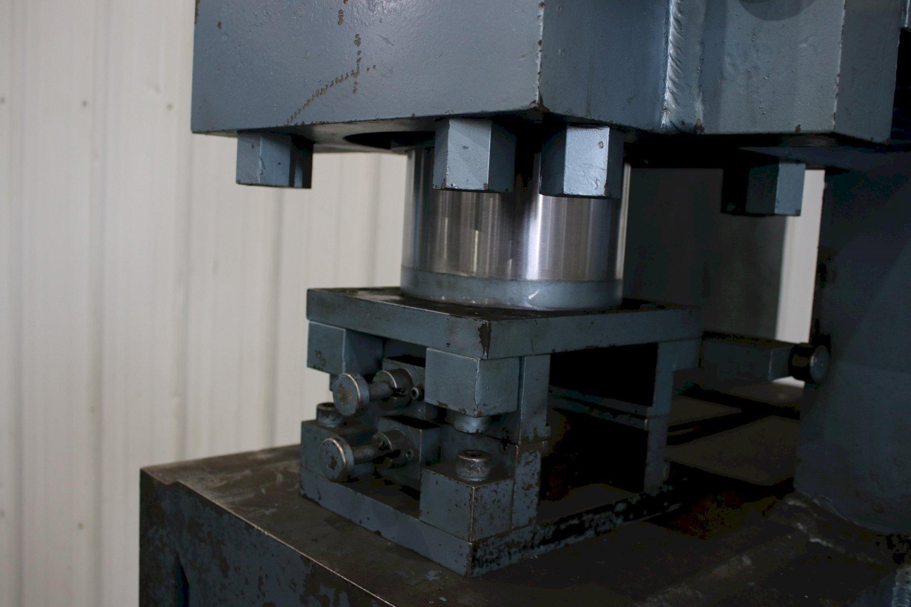 SERIAL .................... NS150-1-189 MODEL ..................... 150 CAPACITY .................. 150 TON STROKE .................... 4" CYLINDER DIAMETER ......... 7" ELECTRIC FOOT PEDAL ....... DUAL DIES SET WITH MACHINE ..... 1/8" & 3/16" DIE SET WITH MACHINE ...... 1/4",5/16" DIE SET WITH AMCINE ....... (3) @ 3/8" DIE SET WITH MACHINE ...... 5/8" & 3/4" MOTOR ..................... 7-1/2 HORSEPOWER |