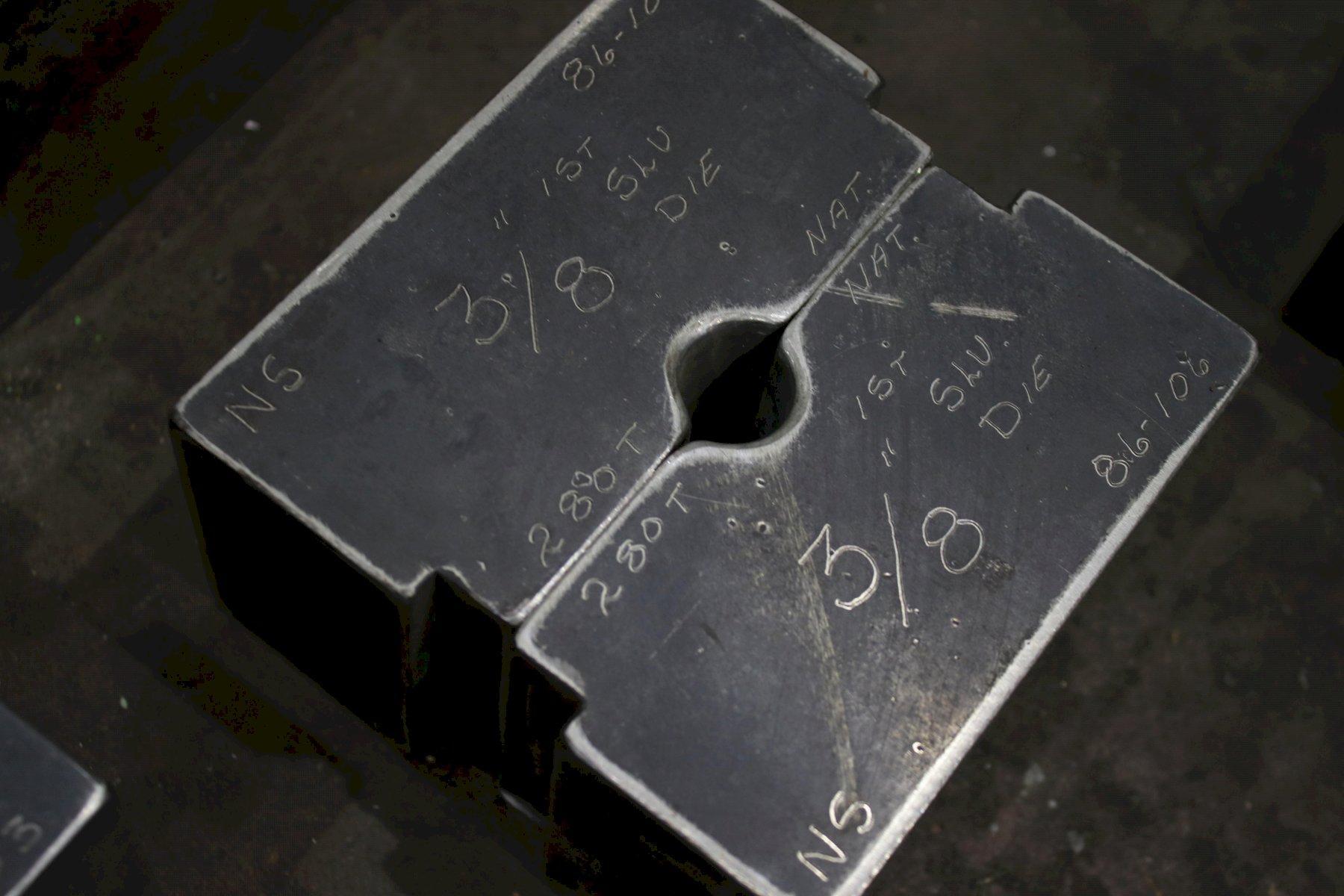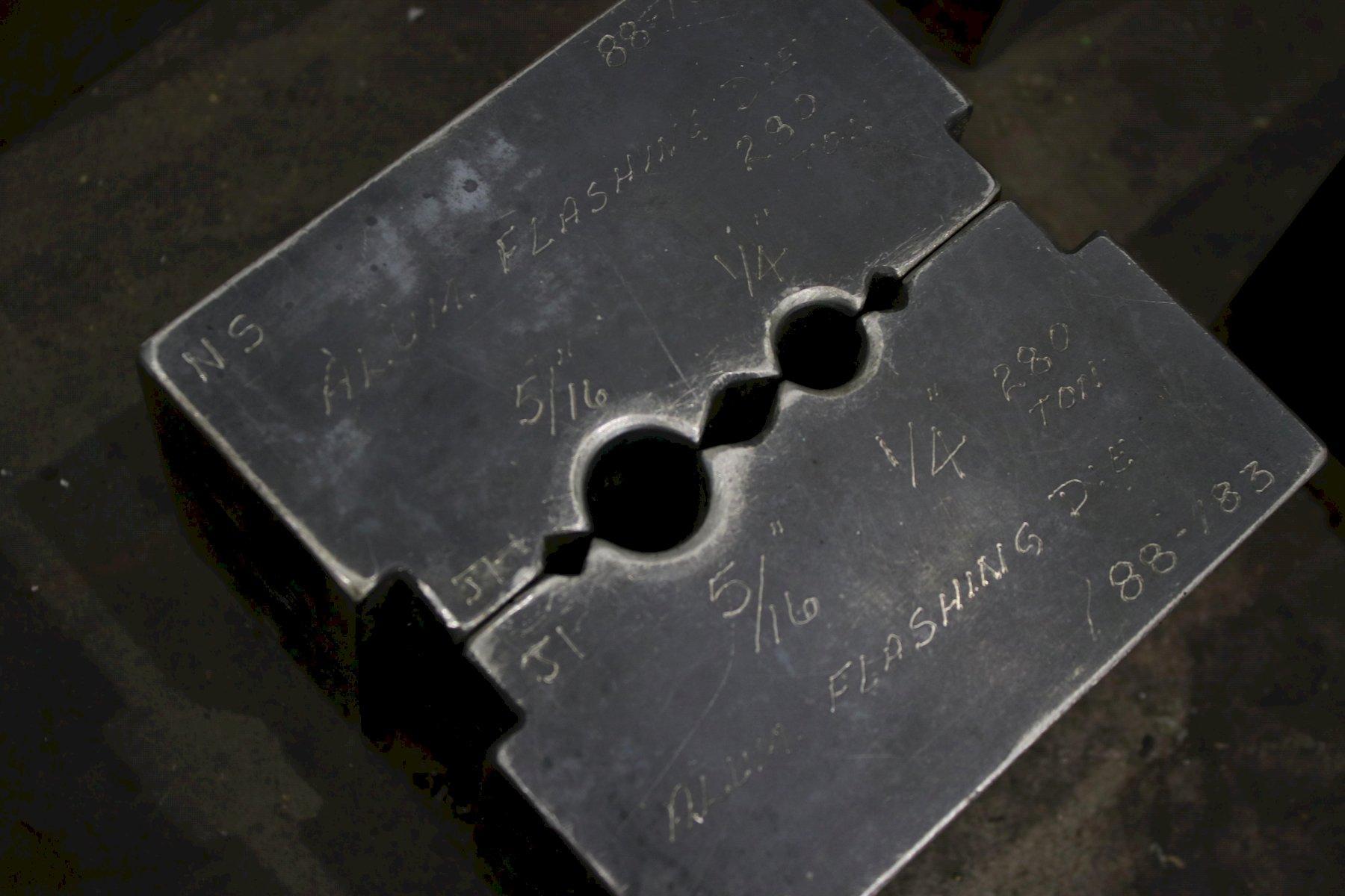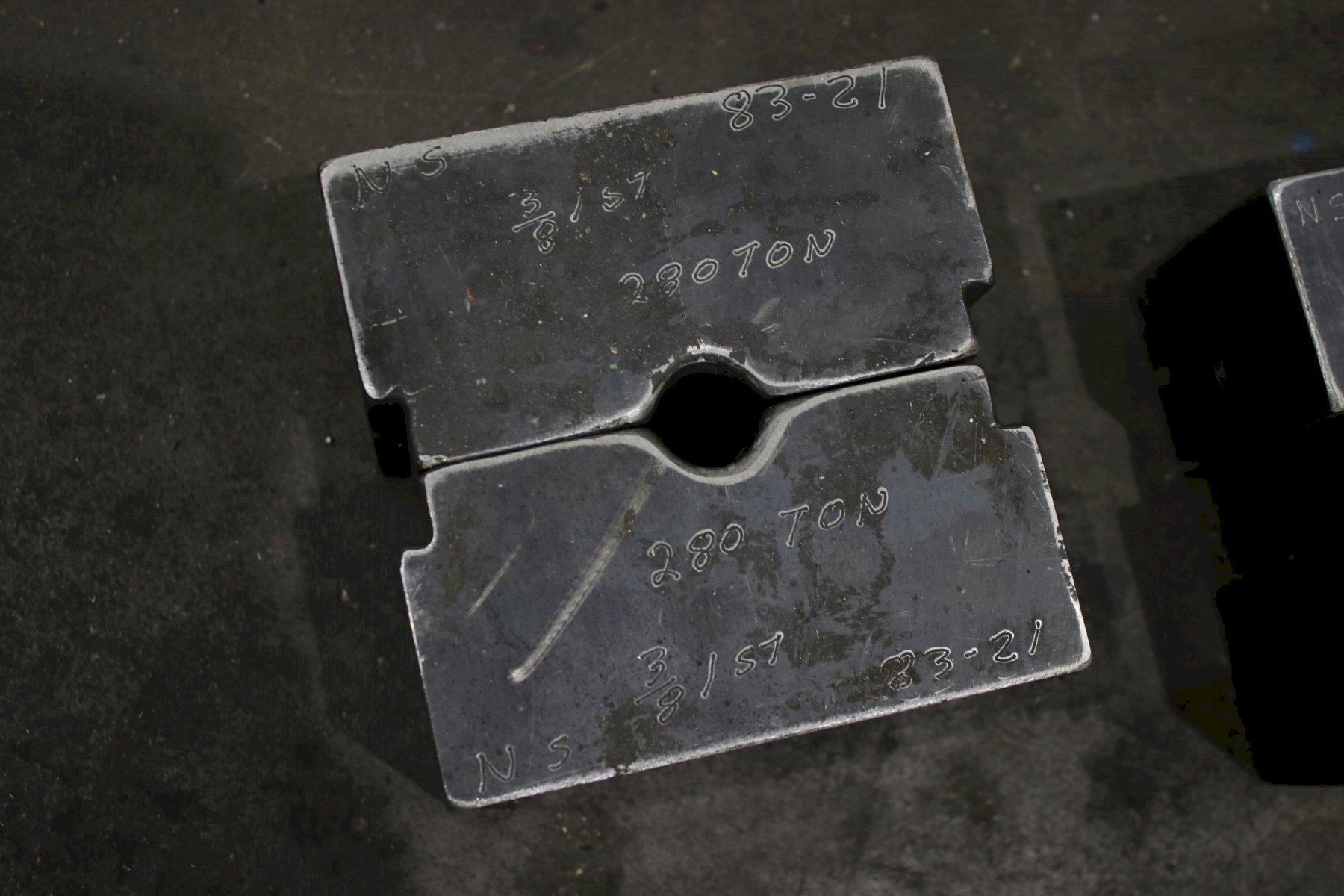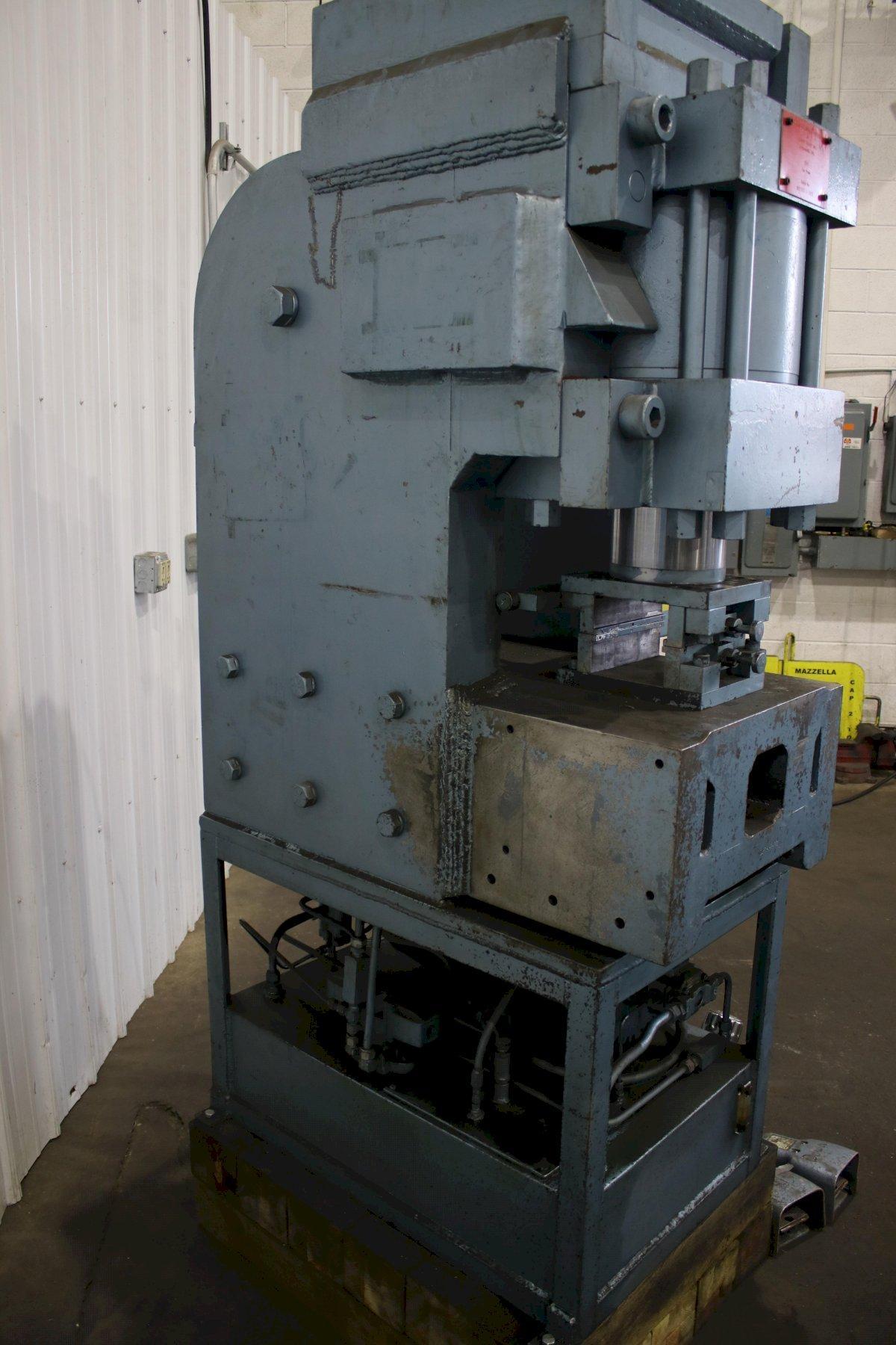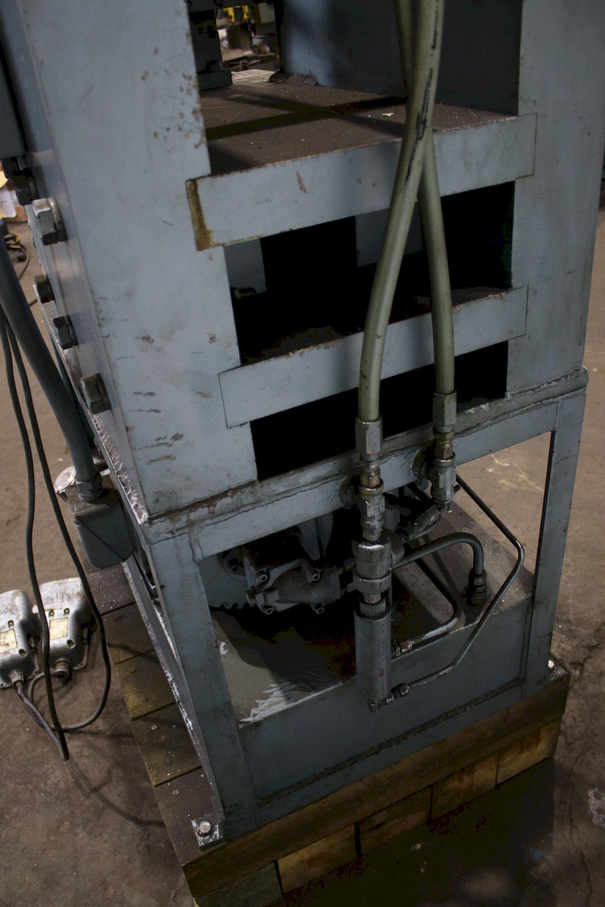 SERIAL .................... NS150-1-189 MODEL ..................... 150 CAPACITY .................. 150 TON STROKE .................... 4" CYLINDER DIAMETER ......... 7" ELECTRIC FOOT PEDAL ....... DUAL DIES SET WITH MACHINE ..... 1/8" & 3/16" DIE SET WITH MACHINE ...... 1/4",5/16" DIE SET WITH AMCINE ....... (3) @ 3/8" DIE SET WITH MACHINE ...... 5/8" & 3/4" MOTOR ..................... 7-1/2 HORSEPOWER |