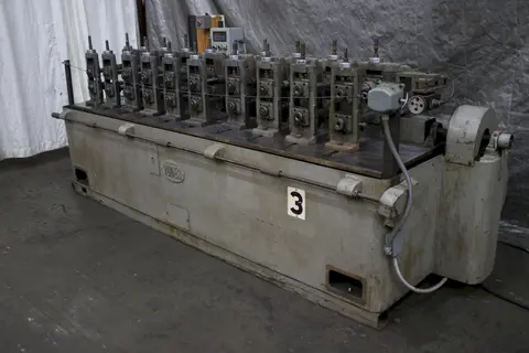 SERIAL ....................... 6731 MODEL ........................ M-1-1/2 NUMBER OF STANDS ............. 10 ROLL SPACE ................... 15" SHAFT DIAMETER ............... 1-1/2" VERTICAL ADJUSTMENT .......... 4" |