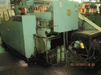 One Used National Model 750 5 Die Cold Former, Serial No 38617 7/8" Cutoff Diameter Mild Steel 3/4" Cutoff Diameter Alloy Steel 4" Shank Length 3 1/8" Cutoff Length 60-80 Pieces per Minute Equipped with: Bushing Cutoff, PKO, Universal Transfer and IFO Cam. Weight 60,000 Lbs. O.A. Dia. 226" x 98" x 91" |