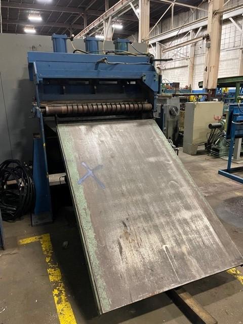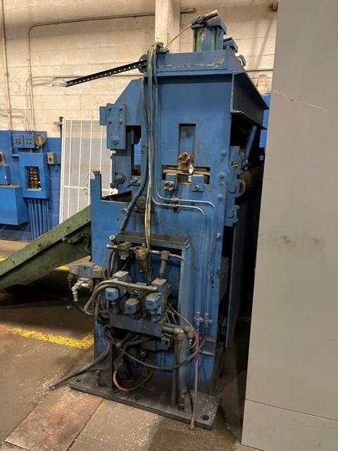 -Line Direction: Right to Left -Entry Pit Cross Over Table: 82" x 54" Hydraulic Sliding Section 80" Long Fixed/Attached Hydraulic Cylinder Lift and Lower -60" Pass Line -58" Width Entry Separator Bar -(3) Air Cylinders - Top Mounted 6" Maximum Lift -Recoiler Threadup Table: 36" Long Hydraulic Cylinder Actuated -Deflector Roll -Valves both Hydraulic and Air Mounted to machine. -Overall Dimensions:105" L x 7" W x 98" H |