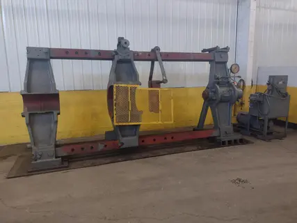 INCLINED CONTRUCTION .......... YES ONE PIECE STEEL BASE .......... YES CAPACITY ...................... 250 TONS RAM DIAMETER .................. 7" STROKE OF RAM ................. 16" VERTICAL BETWEEN STRAIN BARS .. 64" HORIZONTAL BETWEEN BARS ....... 6.25" FLOOR TO CENTER LINE OF RAM ... 43" RESISTANCE BLOCK #1 HOLE ...... 20" OD X 20" WIDE DISTANCE RAM TO BLOCK #1 ...... 20" TO 100" TO FRONT RAIL ADJUSTMENT POINTS ........ 2" HOLES ON 6.5" CENTERS DISTANCE RAM TO BLOCK #2 ...... 124" TO FRONT; 138" TO CENTER RESISTANCE BLOCK #2 HOLE ...... 12" OD x 24" WIDE HYDRAULIC UNIT MOTOR .......... 30 HP |