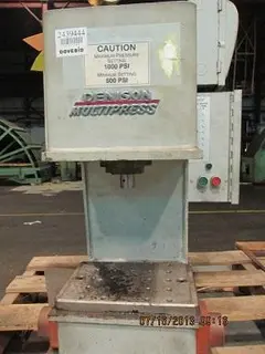 STROKE OF SLIDE, MAX. ............ 3" RAM AREA ........(LR X FB)........ 1.625" X 1.125" @ 1000 PSI - 1 TON BOLSTER AREA ....(LR X FB)........ 10" X 7.5" SIDE FRAME OPENING ............... 8" O.A. DIM. ......(LR X FB X HI)....19" X 17" X 29" EQUIPPED WITH: START/STOP SWITCH TWO (2) PALM BUTTONS 3/4 HP 1725 RPM 240 VOLT 3 PHASE MOTOR |