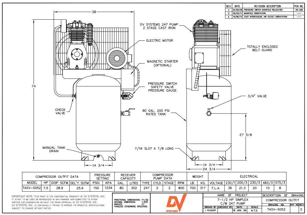 MODEL ......... #7ASV-5052-42 PSI ........... 175 PSI MOTOR ......... 7.5 HP |