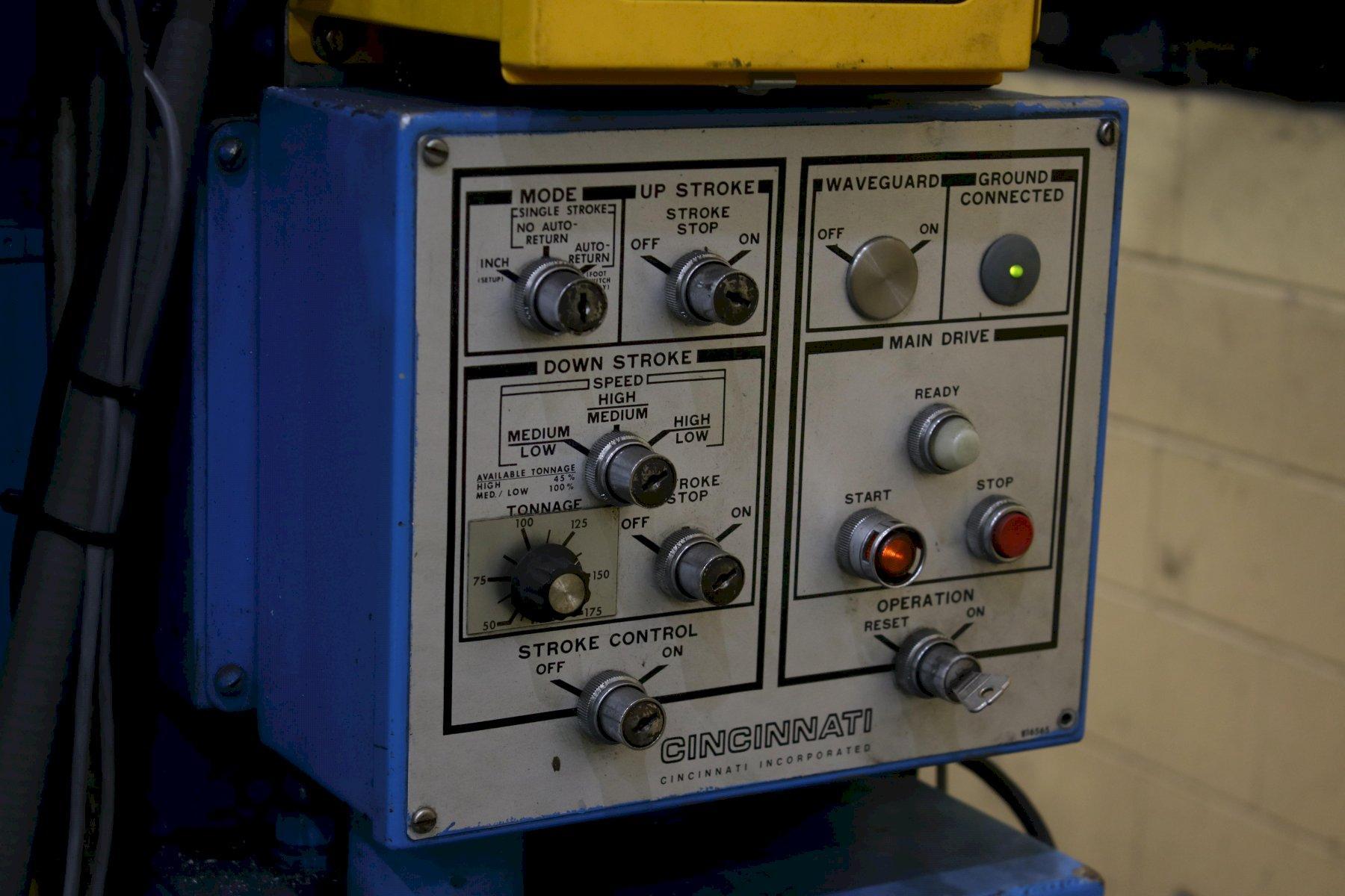 SERIAL ............................. 43067 MODEL .............................. 175X10 CB YEAR NEW ........................... 1982 CAPACITY ........................... 175 TON OVERALL LENGTH OF BED .............. 144" DISTANCE BETWEEN HOUSINGS .......... 126" STROKE ............................. 10" OPEN HEIGHT ........................ 17" CLOSED HEIGHT ...................... 7" DEPTH OF THROAT .................... 8" RAM SPEEDS (HIGH) .................. 132 IPM RAM SPEED (MEDIUM) ................. 65 IPM RAM SPEEDS LOW ..................... 18" RAM SPEEDS RETURN .................. 127" CNC BACK GAGE DEPTH CONTROL ........ HURCO DUAL PALM BUTTONS .................. YES LIGHT CURTAINS ..................... MERLIN ELECTRIC FOOT TRIP ................. YES FLOOR STANDING NO PIT REQUIRED ..... YES MOTOR .............................. 30 HORSEPOWER |