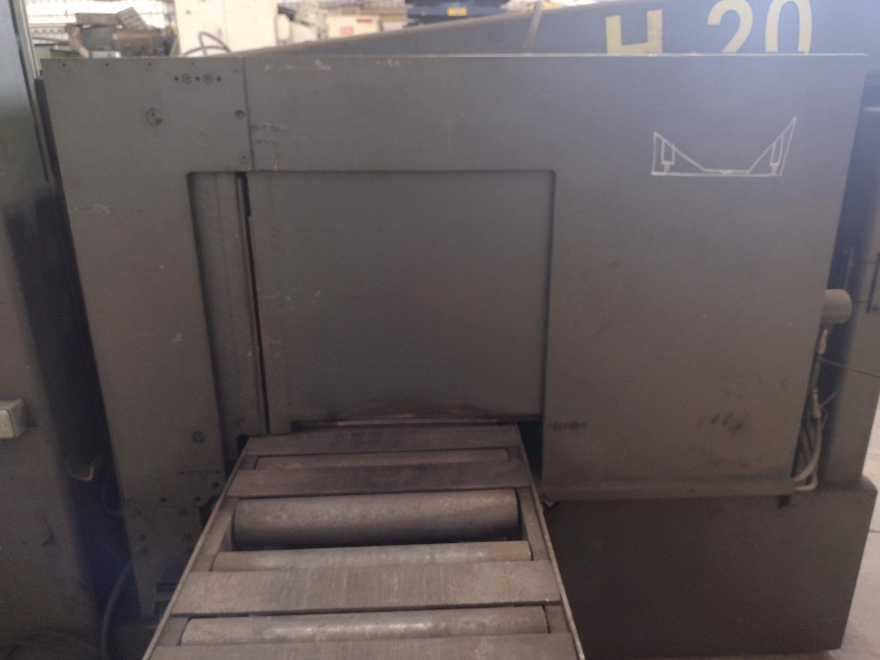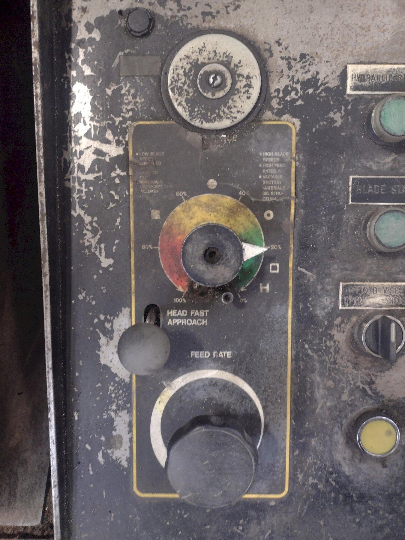MODEL H20AC EQUIPPED WITH: HYD-MECH PLC PROGRAMMABLE CONTROL W/INDEPENDENT AND VARIABLE CONTROL OF HEAD FEED RATE AND FEED FORCE AUTOMATIC MULTI-INDEXING UP TO 35" IN A SINGLE STROKE 10-HP DIRECT BLADE DRIVE AUTOMATIC CHIP REMOVAL AUGER HYDRAULIC BLADE TENSION - HYDRAULIC VISE CONTROL CATALOG SPECIFICATIONS: ROUND STOCK CAPACITY .......... MAXIMUM 20" SQUARE STOCK CAPACITY ......... MAXIMUM 20" X 20" WORKLOAD ...................... MAXIMUM 10000 LBS TABLE HEIGHT .................. 36" BAND LENGTH ................... 22'2" BAND WIDTH .................... 2" BAND THICKNESS ................ 050" BAND CARRIER WHEELS DIAMETER .. 27" BAND SPEEDS VARIABLE ......... 45 TO 265 SFPM SHUTTLE STROKE ............... RANGE 0 TO 35" BLADE MOTOR .................. HORSEPOWER 10 HP HYDRAULIC MOTOR .............. HORSEPOWER 3 HP |