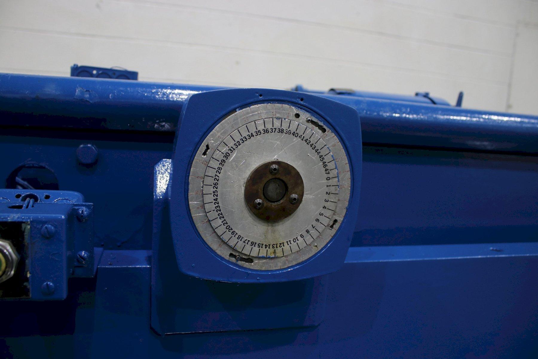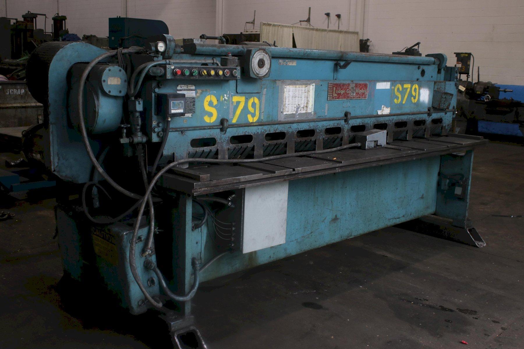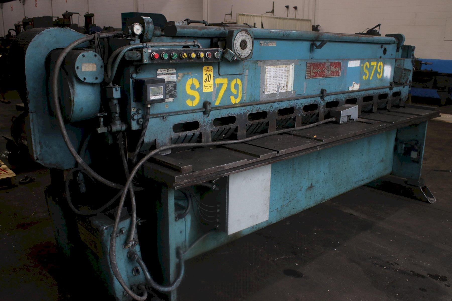 SERIAL ...................... 47961 MODEL ....................... 0210-SL CAPACITY .................... 10 GA CUTTING LENGTH .............. 120" DISTANCE BETWEEN HOUSING .... 124" FRONT OPERATED POWER BACK GAUGE ... 48" NUMBER OF HOLD DOWNS ........ 10 RAKE ANGLE .................. 3/16" STROKES PER MINUTE .......... 60 THROAT ...................... 18 HYDRA HOLD HOLD DOWNS ....... YES AIR CLUTCH .................. YES MOTOR ....................... 10 HORSEPOWER |