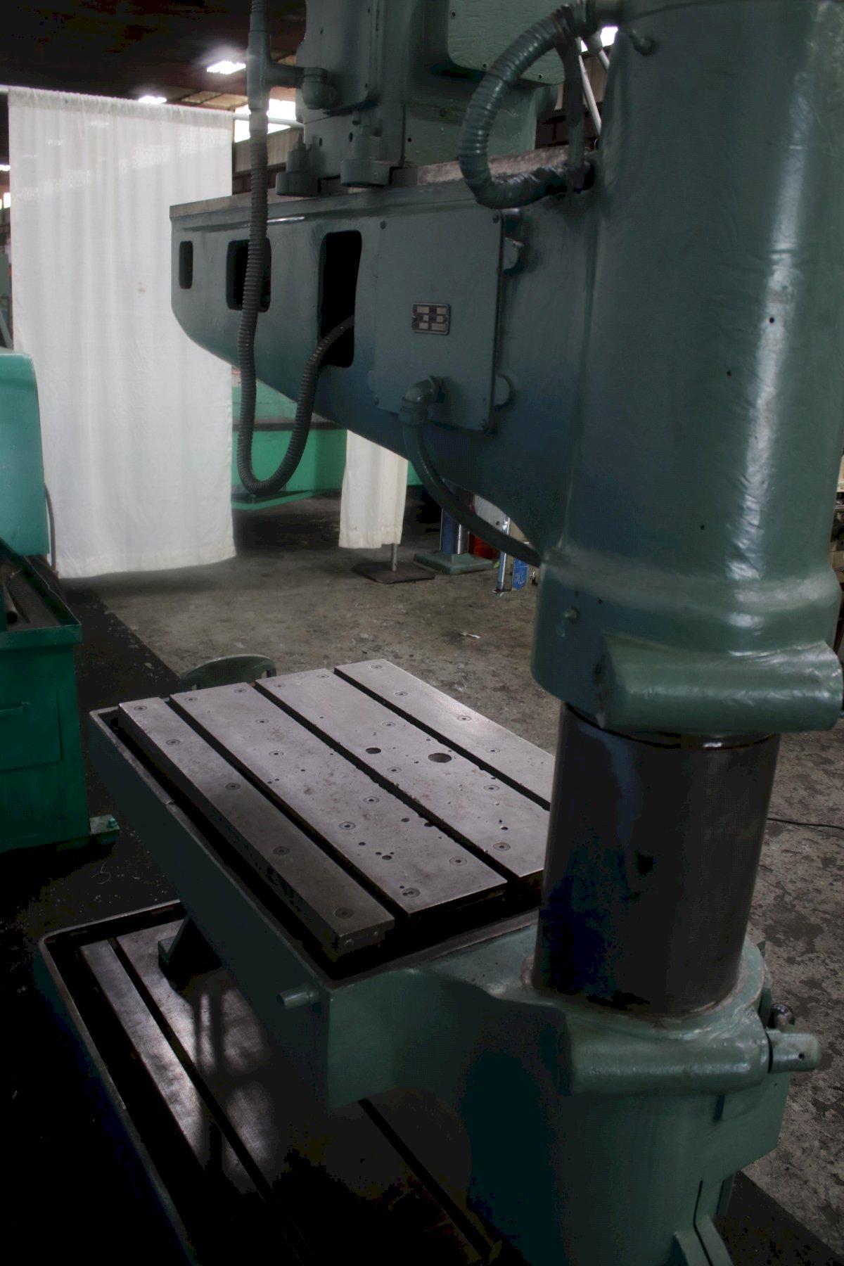 MODEL ....................... SRS-48 COLUMN DIAMETER ............. 9" SPINDLE SPEEDS .............. (9) 100-1500 RPM SPINDLE BORE ................ #3 M.T. SPINDLE STROKE .............. 7-1/4" SPINDLE TRAVEL ON ARM ....... 38" SPINDLE TO BASE MAX ......... 45" SPINDLE FEEDS (3) ........... .005.010.015 IPR T-SLOTTED TABLE ............. 22" X 32" X 20" HIGH BASE AREA ................... 28" X 47" OVERALL SIZE ................ 30" X 60" X 96" HIGH WEIGHT ...................... 3,300 LBS. |