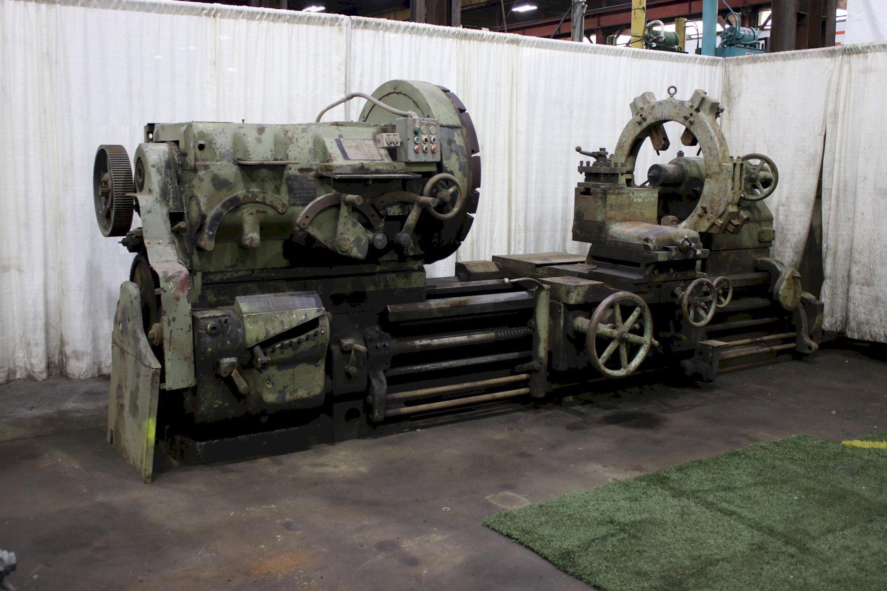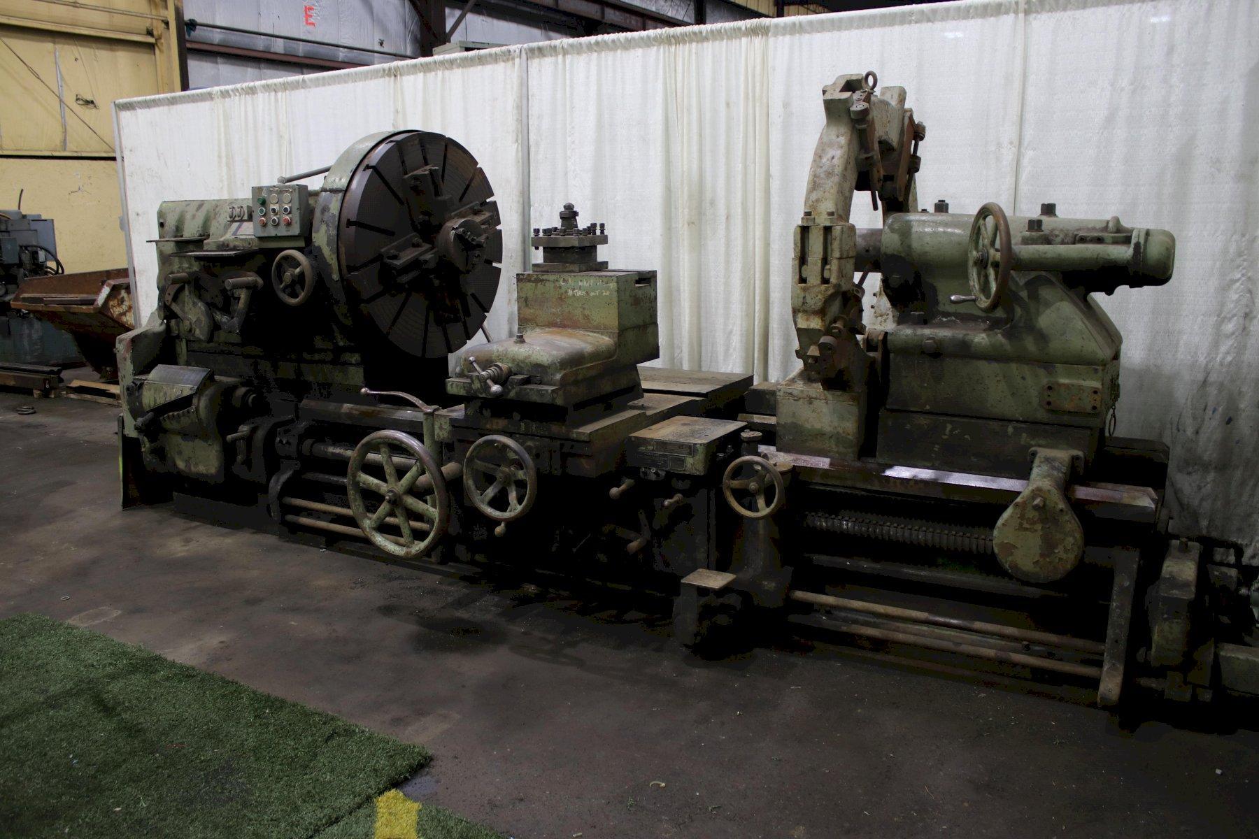 MODEL .............................. HG SWING OVER WAYS .................... 60" SWING OVER CROSS SLIDE ............. 44" DISTANCE BETWEEN CENTERS ........... 84" SPINDLE SPEEDS ..................... (18) 1.8 TO 157 RPM FEEDS .............................. (64) .006 TO .338 IPR THREADS ............................ (64) 1/2 TO 28 TPI DIAMETER OF SPINDLE HOLE ........... 2-1/2" CHUCK .............................. 48" 4 JAW CHUCK THREAD DIAL ........................ YES RAPID TRAVERSE ..................... YES STEADY REST ROLLER TYPE ............ 4 POINTS SWIVEL COMPOUND .................... YES JOGGING ............................ YES MOTOR .............................. 30 HORSEPOWER |