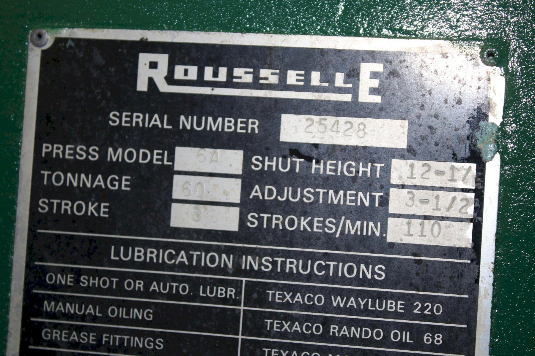 60 TON ROUSSELLE MODEL #6 OBI PUNCH PRESS, 3" STROKE: STOCK 20627