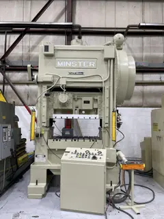 150 ton Minster Press Model# P2-150-54 Piece-Maker Serial Number 22967 150 ton Capacity 6" Stroke 23" Shut Height 4" Motorized Adjustment 54" LR x 40" FB Bed Area 54" LR x 23" FB Slide Area 45-90 VSPM Equipment and Features Air Clutch and Brake Air Counterbalances Monitor Flow Lubrication System Motorized Slide Adjustment Free Standing Operators Control Console Dual Palm Buttons 6" Thick Bolster Plate 56" Distance Between Gibs 42" Distance from Floor to Top of Bed T-Slotted Ram and Bolster Light Curtains 20" Wide Windows Palm Buttons Floor Standing Overall Height: 13' 2" Tall (158 inches) This used 150 ton Minster Piece-Maker press can be seen under power in the S&G Press Livonia MI Warehouse upon request!