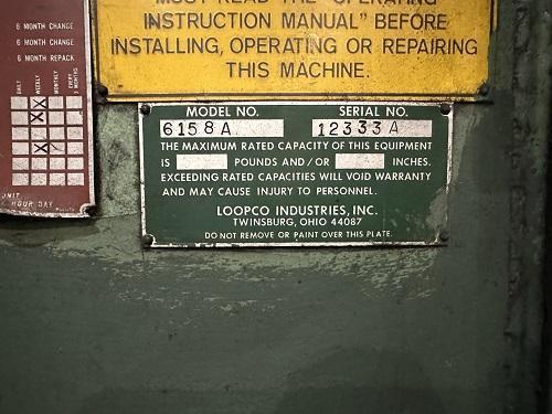 MANUFACTURER – LOOPCO (BRANER) YEAR – 1983 SERIAL NUMBER – 12333A MODEL NUMBER – 6158A LINE DIRECTION – LEFT TO RIGHT LINE SPEED – 295 FPM MAX. STRIP THICKNESS - .375” (3/8”) COIL WIDTH INCOMING – 82” MAX MAXIMUMN CUT WIDTH – 80” MINIMUM CUT WIDTH – 36” KNIFE DIAMETER – 20” DRIVE – 60 HP, 600/1200 RPM, DC |