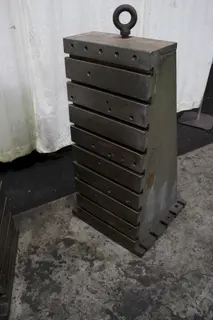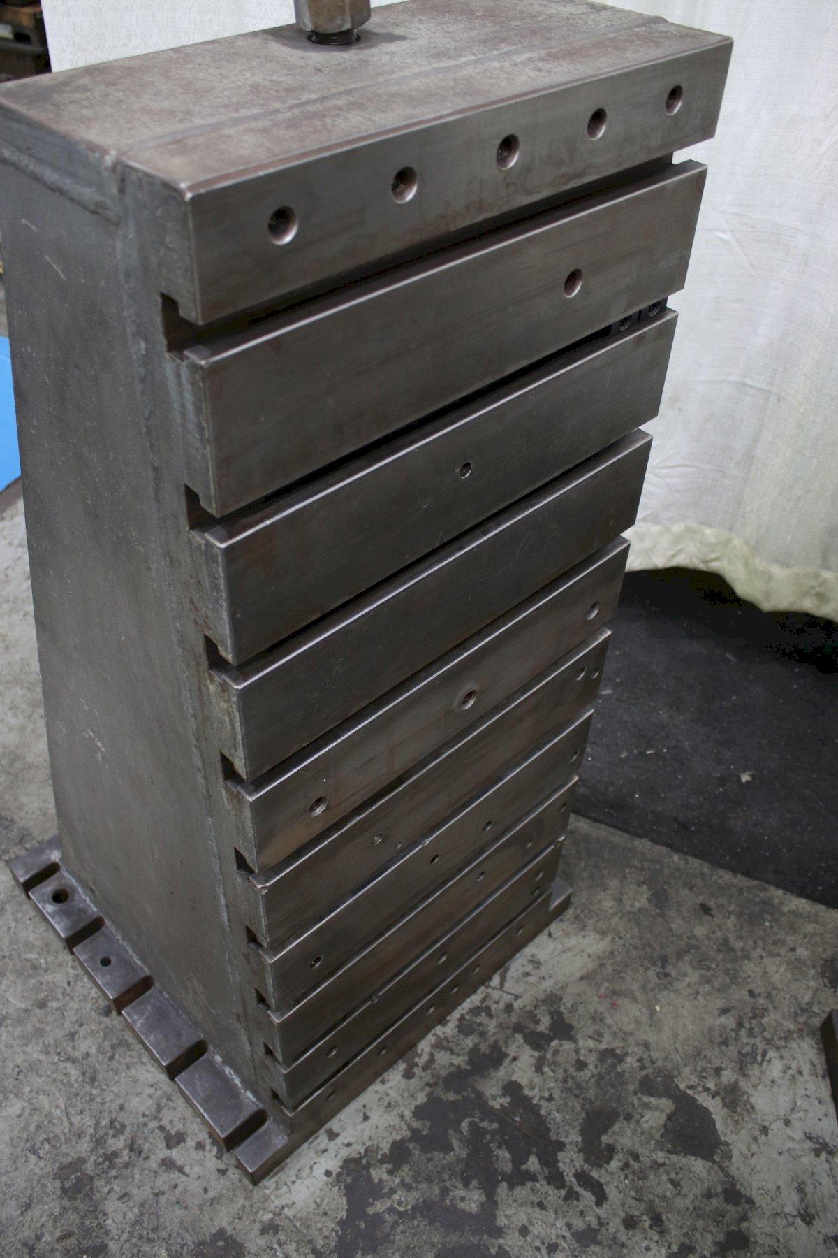 WIDTH OF PLATE ................ 20" HEIGHT OF PLATE ............... 48" DEPTH OF PLATE ................ 24" NUMBER OF T SLOTS ............. 9 T SLOT CENTERS ................ 5" T SLOT WIDTH AT TOP ........... 1" T SLOT DEPTH .................. 2 T SLOT WIDTH AT BOTTOM ........ 1-3/4" NUMBER OF TAPPED HOLES ........ 106 PER SIDE ROWS OF DRILL & TAPPED HOLES .. 18 PER SIDE DIAMETER OF HOLES ............. 3/4" HOLE CENTERS .................. 2-1/2" |