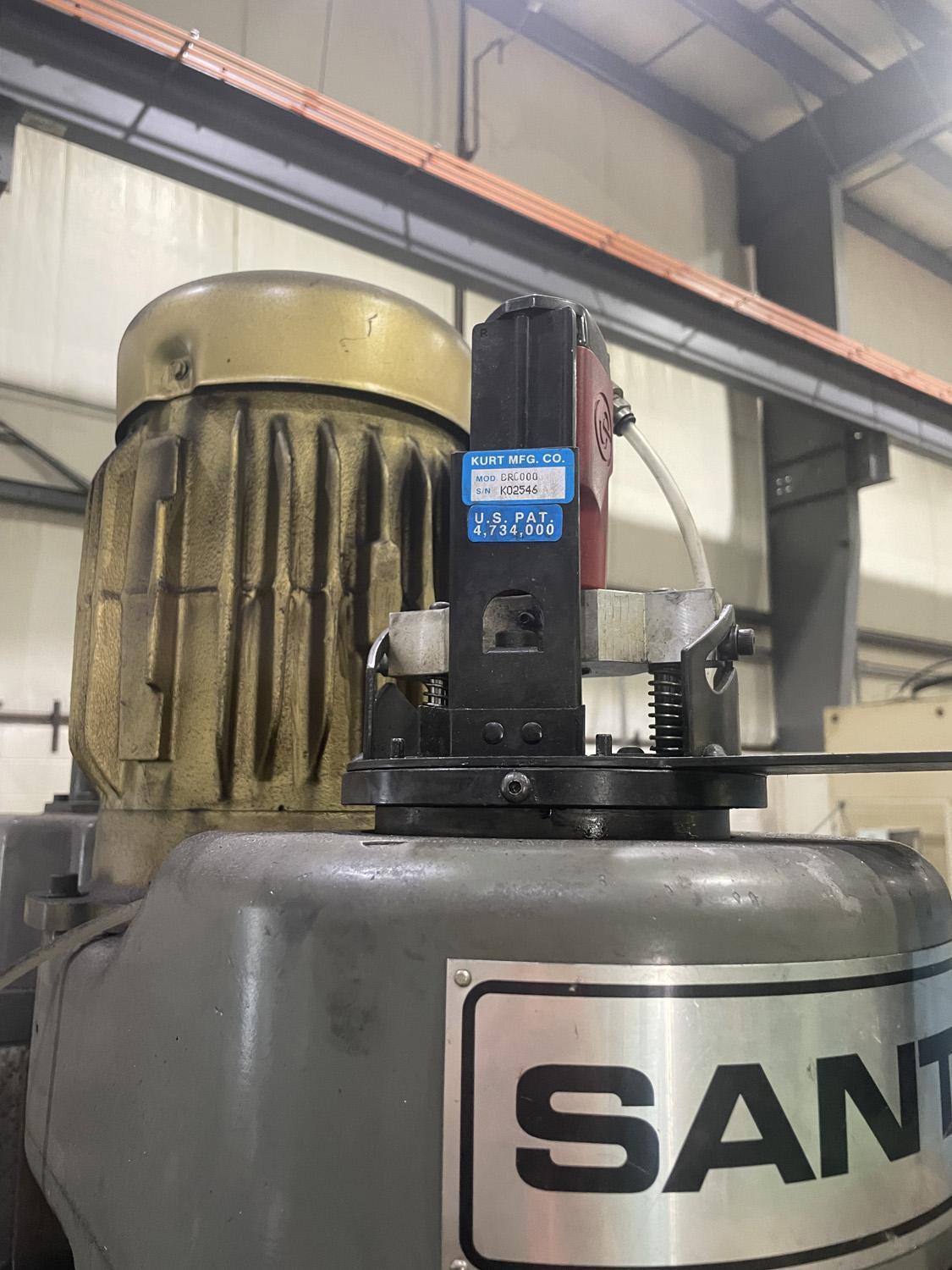 Model: RB-10 Specifications: Table Working Surface: 9″ x 42″ Longitudinal Travel: 30″ Cross Travel: 12″ Head Travel: 18″ Max Height Table to Spindle: 18″ Quill Travel: 5″ Spindle Speeds: Variable Speed 60 to 4500 RPM Taper in Spindle: R8 Feeds: 3 Changes .0015 .003 .006 Main Drive Motor: 3HP Electricals: 220/440 V Approx. Weight: 2,200 Lbs. Approx. Dimensions: 51″ L x 60″ W x 90″H Equipped with: • Proto Trak MX2 CNC Control (3 Axis DRO) • Coolant System • Power Elevation of Head Travel * Kurt Power Drawbar |