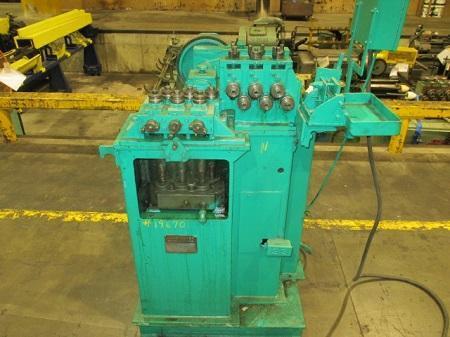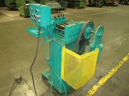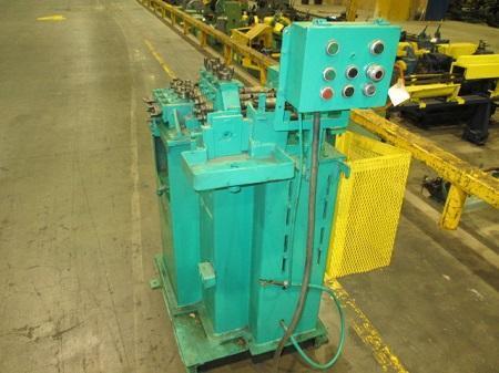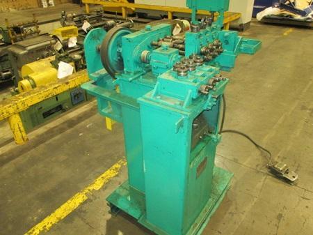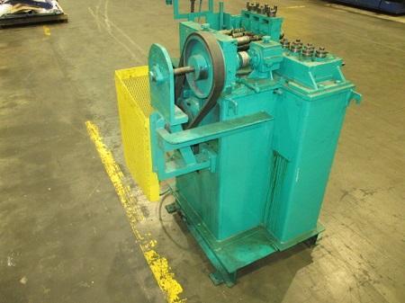 SPECIFICATIONS: CAPACITY: TUBE .......... .0625" - .3125" WITH .040" WALL ROD ........... 125" HEX OR SQUARE ROLL SIZE ............... 1/12" DIA. x 1" FACE SPEED ................... 159 - 635 FPM EQUIPPED WITH: ROLLS: 12-PLANE ALL ROLLS DRIVEN OPERATORS CONTROLS - PUSH BUTTONS FOOT SWITCH MACHINE TOOLED FOR 3/16" DIA. MOTOR DRIVE: 3 HP EST. AC MOTOR V.S. PULLEY DRIVE OVERALL DIMENSIONS: 40" LR x 40" FB x 58" H WEIGHT: 1000# APPROX. |