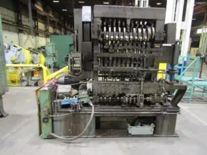 SPECIFICATIONS: NO. PLUNGERS: 10 DISTANCE BETWEEN STATIONS: 3-1/4" BLANK DIAMETER: 2-13/16" DEPTH OF DRAW: 1-1/2" SPEED: 45-90 SPM DRIVE: 10HP, 230/460V, 3PH, 60CYC, 1185 RPM WIRED 240 VAC EQUIPPED WITH: - AIR CLUTCH - CONTROLS - COOLANT - FRONT TO REAR FEED - LUBE w/DIE SET - TRANSFER FINGERS - RIGHT TO LEFT PARTS FEED - LOWER PARTS LIFTERS OVERALL DIMENSIONS: 114" LR x 78" FB x 123"H WEIGHT: 30,350# |