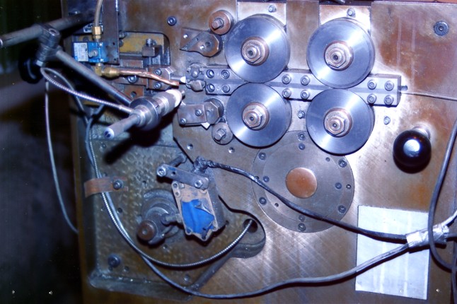 WIRE DIAMETER: .015" TO .072" COIL RANGE: 1.56" MAX. OR 3 TIMES WIRE DIA. SPRINGS/MINUTE: 20 TO 200 WIRE LENGTH/MINUTE: 300 FT EQUIPPED WITH: - PITCH & DIAMETER CONTROLS - MANUAL CLUTCH - 22 ROLL/2 PLANE STRAIGHTENER - UPPER/LOWER CUTOFF - NO TORSION LINKAGE - WITH LION 9EX PROCESS CONTROL MOTOR: 2 HP, WITH CONTROLS OVERALL SIZE: 44" LR x 34" FB x 57" H WEIGHT: 1475 LBS |