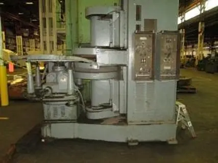 Equipped with: Vertically mounted 30" diameter grinding wheel (2) 25 HP 3/60/220-440v (1740 RPM) Motor 60" Rotary Dial Feed driven by 2 HP AC Variable Speed Drive - Controls Spindle speed 5500 FPM Machine may be used to grind to size, flatten and parallel coil springs of various wire diameters and lengths. Approx. weight 16,000 lbs. O.A. Dimensions - 10'3" fb x 5'2" lr x 8'5" high |