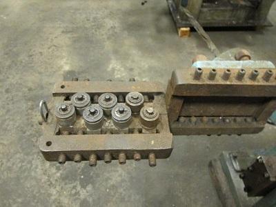 DIAMETER BASIC WIRE .......... 3/32" MAXIMUM WIDTH STRIP METAL .... 1" STD. FEED LENGTH ............. 8" EQUIPPED WITH: SHELL CAMS 7 ROLL 2 PLANE STRAIGHTENER VERT. TOOL POST & STRIPPER MECHANICAL CLUTCH AUX. FRONT SLIDE FRONT, REAR, LEFT & RIGHT SLIDES ELECTRICAL PANEL STOCK CHECK GRIPPER FEED MOTOR DATA: 1-1/2 HP, 208-220/440V, 3PH, 60CYC, 1705 RPM WITH CONTROLS OVERALL DIMENSIONS: 77" L x 50" W x 56" H |