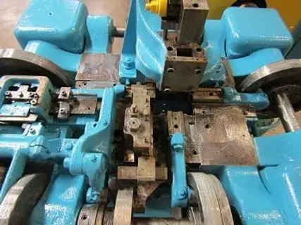 MAXIMUM DIAMETER SOFT STEEL WIRE........... 3/32" STANDARD WIDTH RIBBON METAL................ 3/4" MAXIMUM FEED LENGTH USING FEED SLIDE STOPS. 6" MAXIMUM FEED LENGTH NOT USING SLIDE STOPS.. 7-1/4" STROKES WITH CAMS: FRONT SLIDE CAM........ 1" REAR SLIDE CAM......... 7/8" SIDE CAMS.............. 1-5/8" VERTICAL............... 13/32" - 57/64" BED OPENING (L-R) X (F-B).................. 4-3/4" X 4-1/2" DIAMETER OF CAM SHAFTS..................... 1-9/16" EQUIPPED WITH:- POSITIVE FEED SPLIT CAMS DOUBLE GIB SLIDES POSITIVE STOP CHECK STRIPPER WITH FLAT FACE FORM BRACKET MECHANICAL CLUTCH AC MOTOR AND CONTROLS |