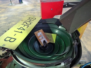 Shimazu Model Super 2 Twin Spindle Nut Tapper, Serial No 2191, 1990 #10-1/4" Product Range ( Tap Size) 170, 190 Pieces per Minute 185mm x 25mm R Bent Tap Hopper AC Motor and Control Weight 1500 Lbs. |