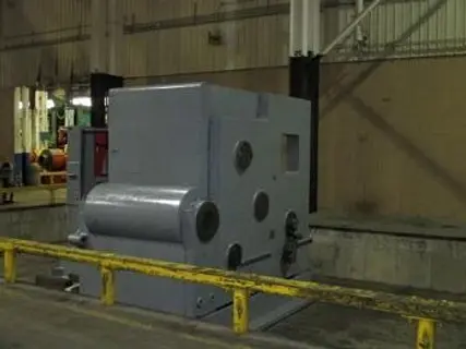 Width of Roll dies ................................. 60" Maximum roll die dia. .............................. 44" Maximum Length rolled section ...................... 82" Weight, approx. .................................... 160,000# Equipped With: Air Clutch Side Shear Works 1 x 12" to 8" RCS; 100 ton working pressure Inboard Type 300 HP G.E Induction Electric Motor; 568 Frame Total weight, per catalog, is 135,000 lbs. We estimate the Base Plate - 35,000 lbs Frame - 45,000 lbs Rolls - 18,000 each Elec. panels and Motor - 20,000 lbs Motor: 86" L x 50" W x 50" H Main Frame: 14'8" L x 60" W x 95" H Back Shaft: 10'L x 70" x 70" H Gear Frame: 135" L x 86" W x 112" H Roll: 124" L x 60" W x 60" H Base Plate: 176" L x 132" W x 24" H Elec. Panel: 58" x 68" x 92" H |