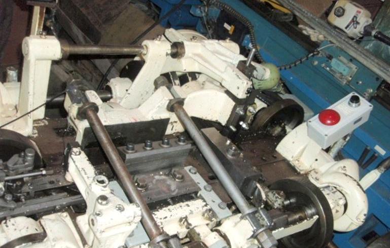 Maximum Diameter Basic Wire 3/32" (.093") Maximum Width Strip Metal. 1 1/4" Feed Length 8" Slide Strokes Front 1" Sides 2" Back 1 1/4" Sroke of Sripper rod 1-1/2" Motor 1.5 h.p. Variable Speed Production 50 - 200 spm Opening in bed 6' x 5" Wire Line 34 1/8" Floor Space 53" x 77" Weight 2600 lbs. Press attachment specs: Max. Tons...8 Stroke...3/4" Die Set Length...11 3/4" Length of Die Space ..... 11-3/4" |