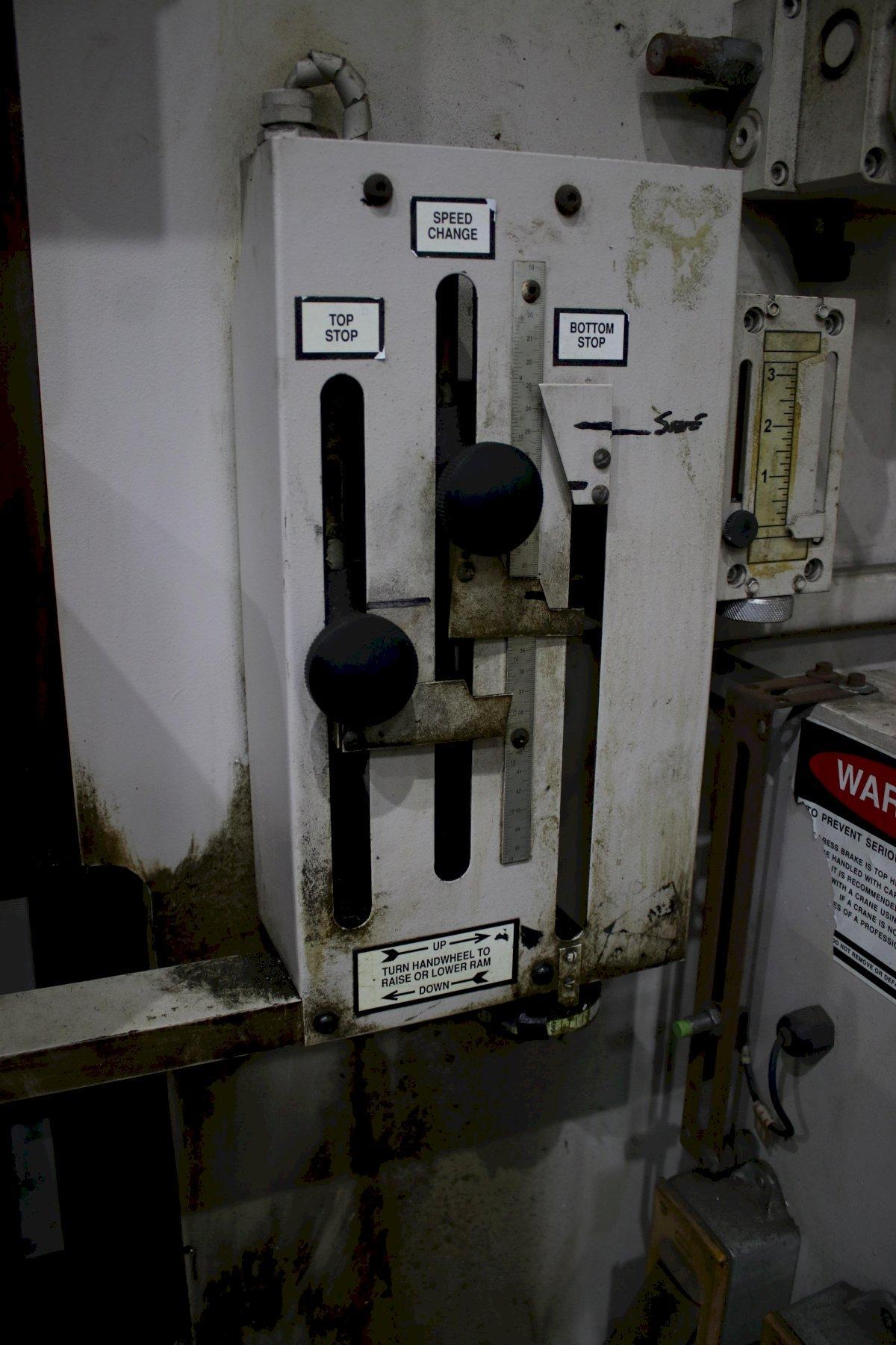 SERIAL ......................... TH4-105 MODEL .......................... THS100-144 YEAR NEW ....................... 2000 CAPACITY ....................... 100 TON OVERALL LENGTH OF BED & RAM .... 144" DISTANCE BETWEEN HOUSING ....... 126-1/2" STROKE ......................... 0 - 8" OPEN HEIGHT .................... 17" CLOSED HEIGHT .................. 9" DEPTH OF THROAT ................ 7" RAM SPEED APPROACH ............. 300 IPM RAM SPEED FORMING .............. 20 IPM RAM SPEED RETURN ............... 200 IPM ADJ STROKE STOP LIMITS ......... YES DUAL FOOT PEDALS .............. YES AUTO LUBE ..................... YES MILLED & DRILLED FOR ANGLES ... YES MOTOR ......................... 10 HORSEPOWER |
