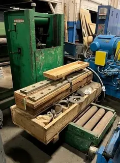-Motorized Conveyor Deck - 30" x 24" -One Deck has rolls running "In Line", the other at 90 Degrees -Approx. 16" Lift -Self Contained Hydraulics -Approx. 14" from floor to top of Conveyor Rolls -Overall Size: 67" L x 31" W x 70" High |