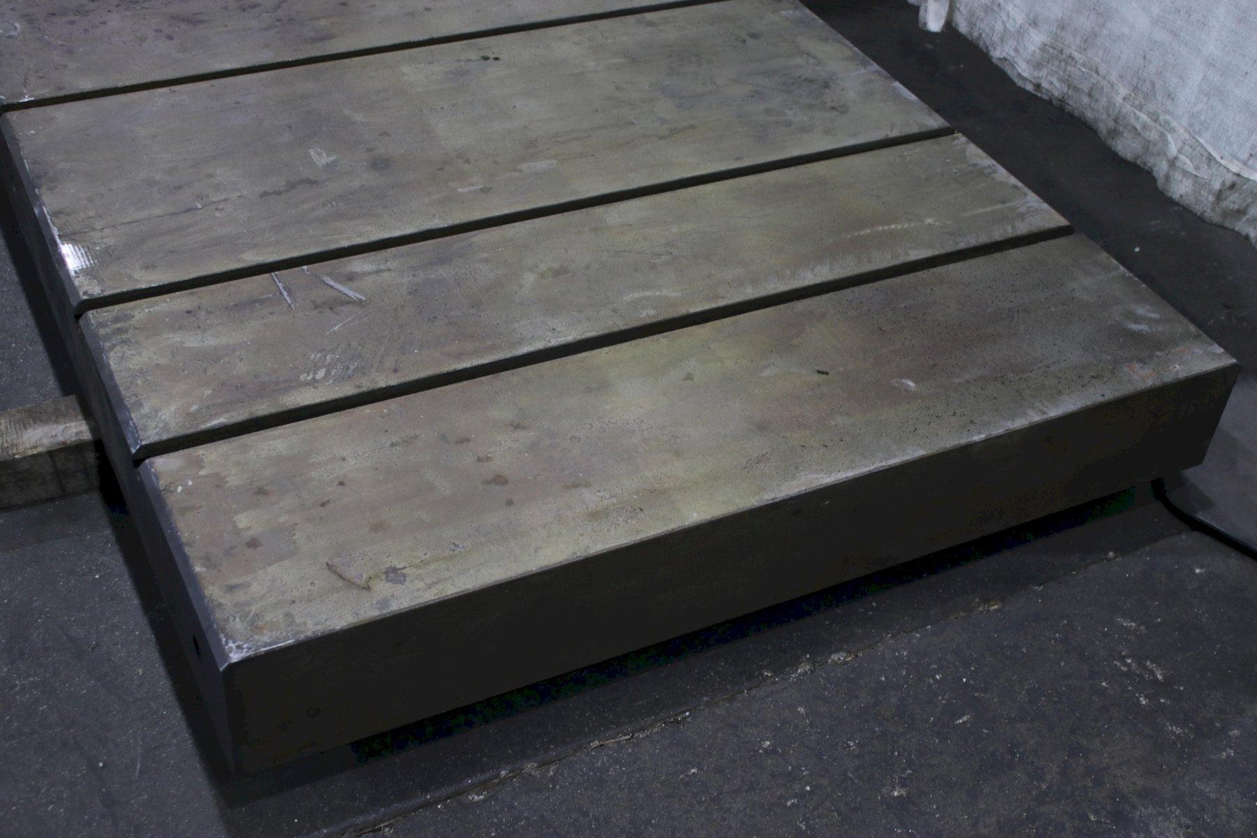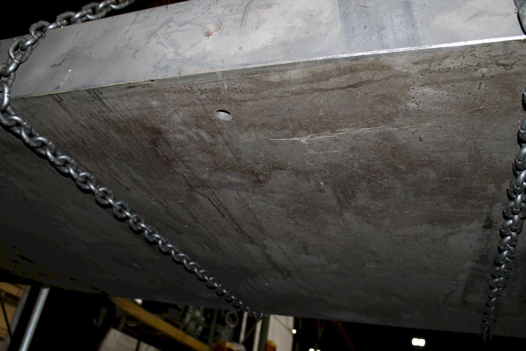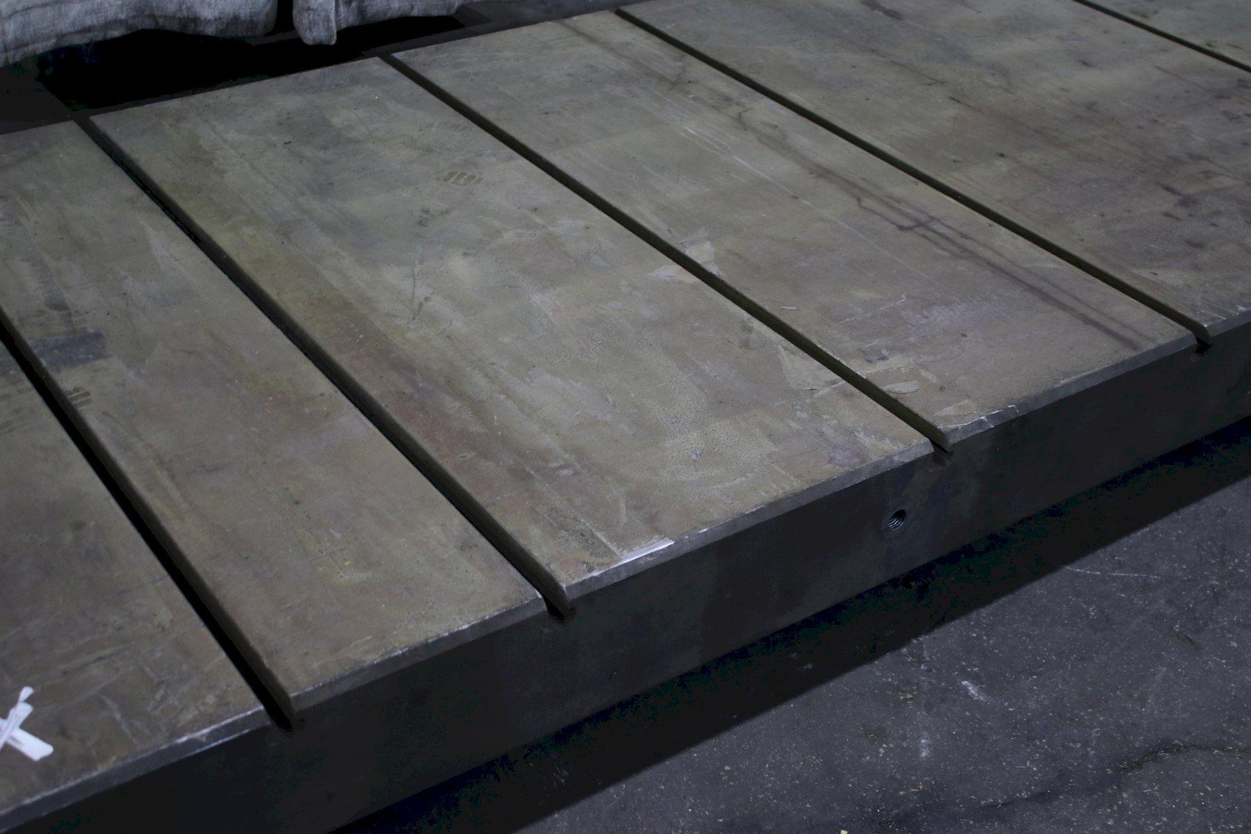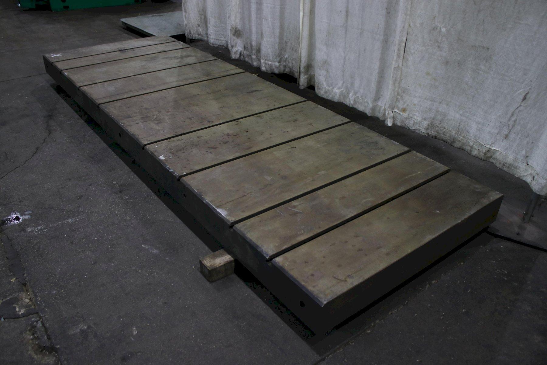 SOLID BOLSTER PLATE .............. YES LENGTH OF PLATE .................. 144" WIDTH OF PLATE ................... 60" HEIGHT OF PLATE .................. 6-3/4" NUMBER OF T SLOTS (48" LENGTH) ... 8 WIDTH OF T SLOTS ................. 7/8" DEPTH OF T SLOTS ................. 1-3/8" WIDTH OF T SLOTS AT BOTTOM ....... 1-1/2" |