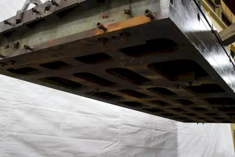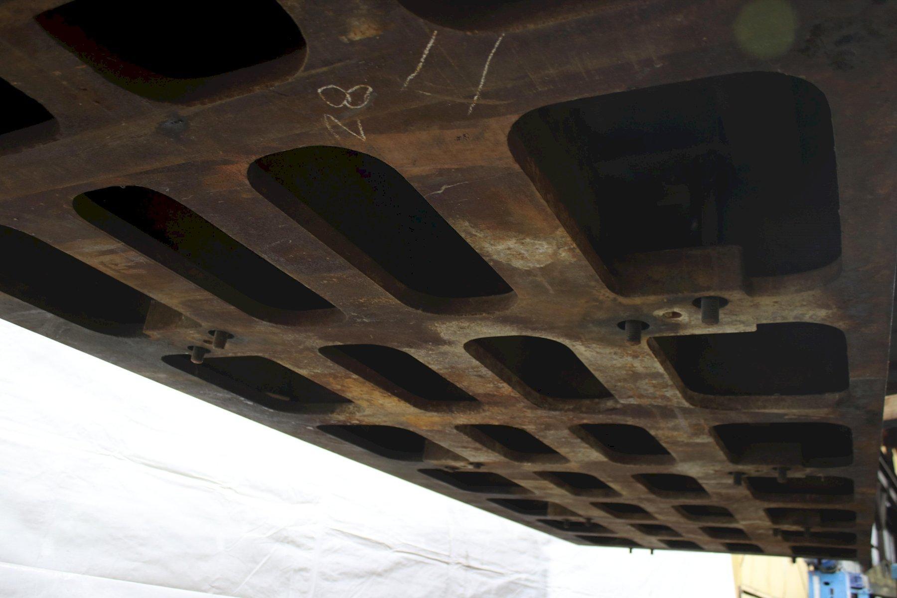 LENGTH OF PLATE .............. 188" (15'6) WIDTH OF PLATE .............. 60" PLATE THICKNESS .............. 12-1/2" NUMBER OF T SLOTS ............ 5 T SLOT CENTERS ............... 12" T SLOT WIDTH AT TOP .......... 1-1/4" T SLOT DEPTH ................. 3" T SLOT WIDTH AT BOTTOM ....... 2-1/2" ** SISTER PLATE IS STOCK #76043 |