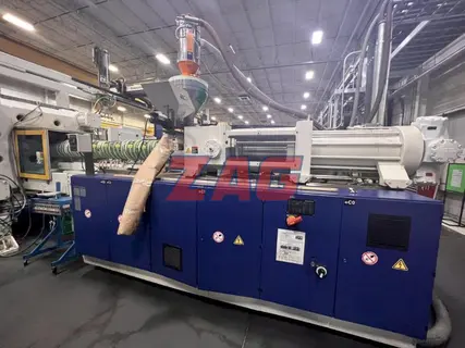 Injection pressure: max 1482 / 21500 psi Screw diameter: 115mm Platen size: 1960 x 1710 Daylight max: 2400 Min mold height: 500 Max mold height: 1370 Type of screw: mixing Equipped with: one core pull KM robot included. 950 KM Robot - Type: NR 360, SN 2103367, Date 09/2004 Dimensions: 36.3’L x 11.2’W x 9.8’H |