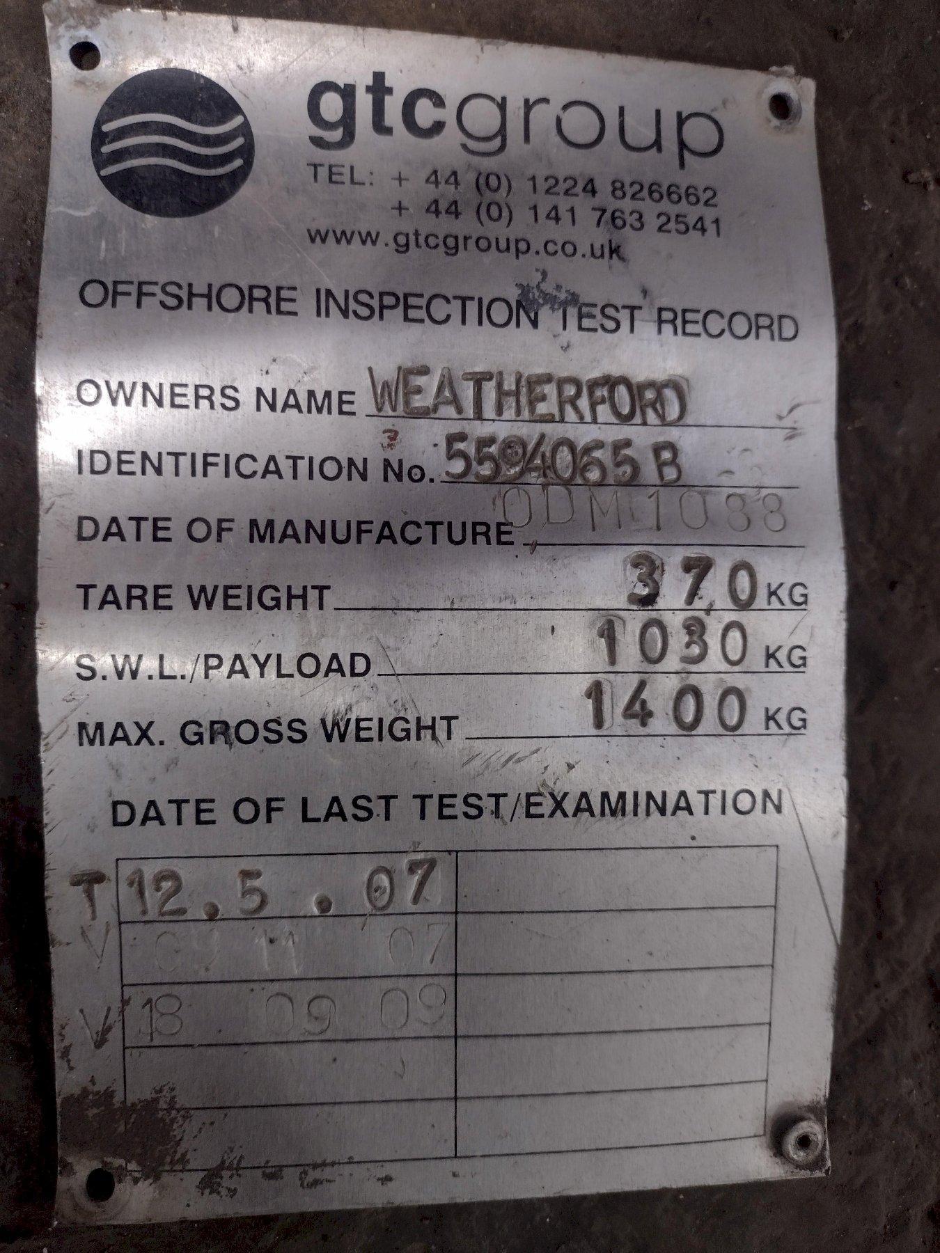 PROOF LOAD ....... 4000 KG (8820 LB) TARE WEIGHT ...... 370 KG (815 LB) MAX. PAYLOAD ..... 1030 KG (2270 LB) MAX. GROSS WT. ... 1400 KG (3090 LB) MPI .............. BL068 LOAD TEST ........ BL068 |