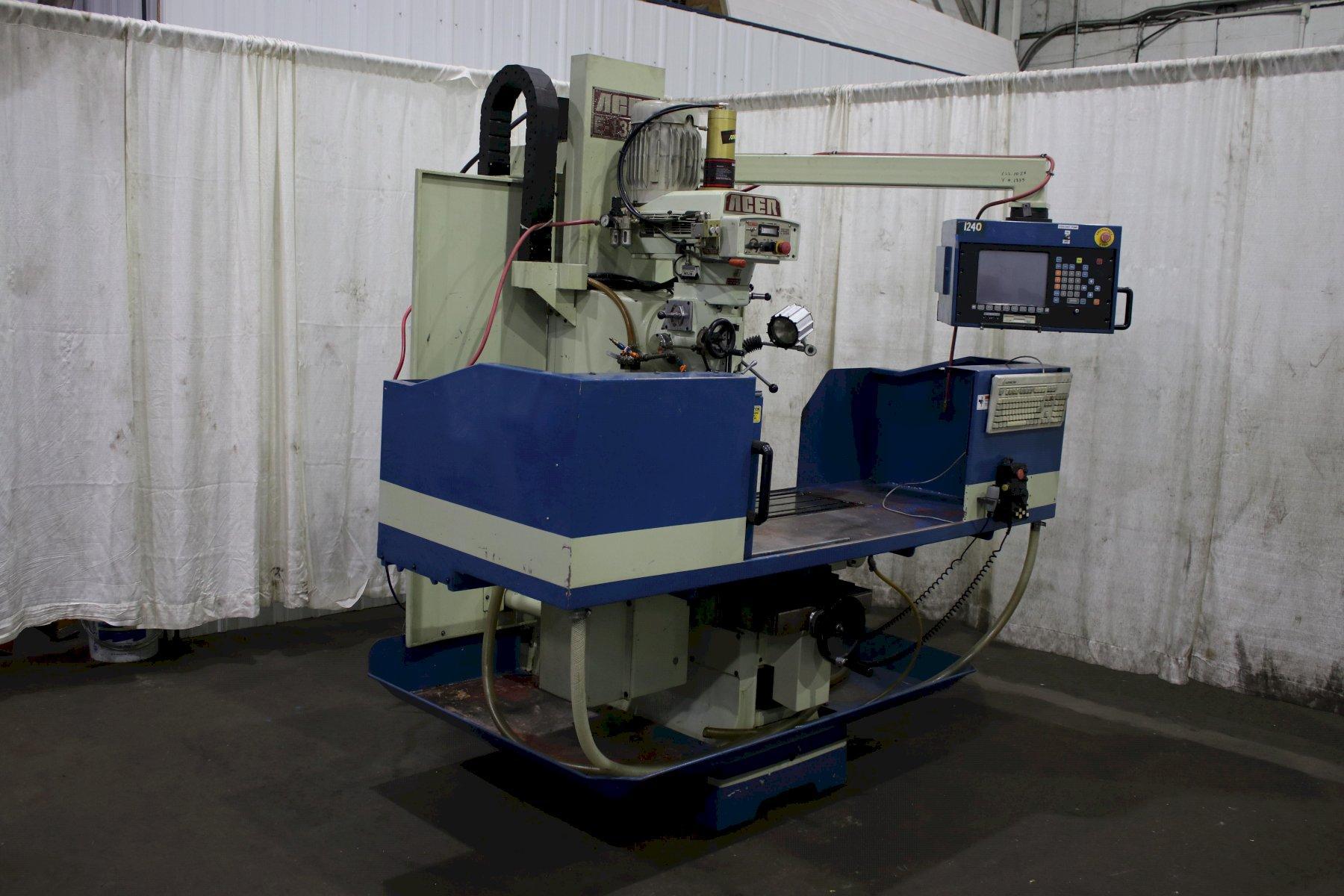 SERIAL ............................ N1040308 MODEL ............................. 1350 NEW ............................... 2001 TABLE AREA (T-SLOTTED) ............ 50" X 13" LONGITUDINAL TABLE TRAVEL ......... 36" CROSS TABLE TRAVEL ................ 16" RAM TRAVEL ........................ 5" SPINDLE SPEEDS (VARIABLE) ......... 50 TO 3700 RPM SPINDLE TAPER ..................... 40 SPINDLE FEEDS ..................... .OO15, .003, .006 IPR QUILL DIAMETER .................... 3-3/8" QUILL STROKE ...................... 5" 1 SHOT LUBE ....................... YES CNC CONTROLS ...................... MILL POWER SPINDLE MOTOR ..................... 5 HORSEPOWER |