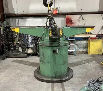 ARMS .................................... 3 EACH ARMS CAPACITY ...................... 40,000 LBS X 60"WIDE 1 ARM ................................... 42" LONG W/ 6.5" WIDE C-HOOK SLOT 2 ARMS .................................. 48" LONG (WELDED EXTENSIONS) PASSLINE FROM FLOOR TO TOP OF ARM ....... 62" INCHES APPROX POWERED ROTATION VIS HYDRAULIC MOTOR .... YES TURNING RADIUS .......................... 61" INCHES APPROX BASE PLATE DIAMETER ..................... 42" INCHES APPROX |