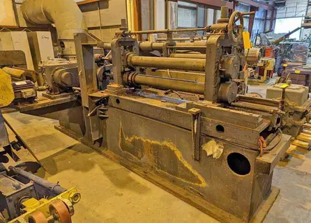 DIAMETER ................................. 5.00" INCHES FACE ARBORS .............................. 37" INCHES ENTRY DRIVEN PINCH ROLLS ................. YES ENTRY SIDE GUIDES ........................ YES ( MANUAL ADJUSTMENT) PARALLEL ARBOR ADJUSTMENT ................ YES AC MOTOR THREADING DRIVE ................. 7.5 HP 1745 RPM VOLTS .................................... 230/460 EATON DYNAMATIC AJUSTO SPEDE DRIVE ....... 5 HP 1755 RPM MODEL DAU 512 TRANSMISSION ............... 1:1 RATIO AND 3:1 RATIO LINE DIRECTION ........................... LEFT TO RIGHT OVERALL SIZE ............................. 180" INCHES LENGTH X 94" INCHES WIDTH X 78" INCHES HIGHT WEIGHT .............................................................. 12,000 LBS |
