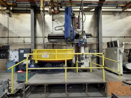 TABLE DIAMETER .............. 80" (2000 mm) MAXIMUM SWING ............... 86" (2200 mm) TABLE LOAD CAPACITY ......... 20 TONS TABLE ROTATION SPEED ........ 1.6 TO 200 RPM TURNING HEIGHT .............. 98" (2500 mm) CROSS RAIL VERT TRAVEL ...... 86" (2200 mm) RAM VERTICAL TRAVEL ......... 63" (1600 mm) SIZE OF RAM ................. 8.8" X 8.8" (224 mm) CARRIAGE HORIZONTAL TRAVEL .. 51" (1305 mm) CARRIAGE & RAM MOTORS ....... FANUC SERVO RAPID TRAVERSE .............. YES TOOL HOLDER IN RAM .......... YES DIGITAL READOUTS ............ YES, NEWALL MAIN MOTOR .................. 60 HP |