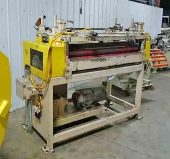 WIDTH ....... 48" INCHES STRIP THICKNESS ......... .015" INCH (MIN) - .030" INCH (MAX) WORK ROLLS ...... 8 (4 OVER 4) WORK AND PINCH ROLLS .......... MOUNTED TO ANTI FRICTION BEARINGS ENTRY PINCH ROLLS ....... POWERED FROM 2 PNEUMATIC CYLINDERS LOWER WORK AND PINCH ROLLS ......... GEARED TOGETHER AND CHAIN DRIVEN LINE SPEED ..... 0-200 RPM AC DRIVEN MOTOR ............. 10 HP/1760RPM VOLTS ......... 230/460 APPROX OVERALL SIZE ....... 84" INCHES (LENGTH) X 36"INCHES (WIDTH) X 72" INCHES (HEIGHT) |