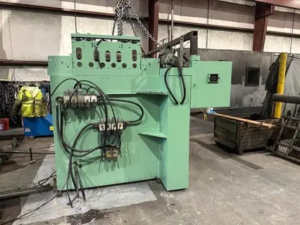 PEELER TABLE ........................ YES (ATTACHED TO STRAIGHTENER) CAPACITY ............................ 60" INCHES X 0.105" INCHES PINCH ROLLS ......................... ENTRY DRIVEN WORK ROLLS .......................... 7 (3 OVER 4) ROLLS DIAMETER ...................... 5" INCHES EXIT PINCH ROLLS .................... HYDRAULIC DRIVEN DOUBLE STUB EDGE TRIMMER ............ YES POWERED WIDTH ADJUSTMENT ............ YES COMMON DRIVE WITH STRAIGHTENER ...... YES OVERALL SIZE ........................ 109" LENGTH X 105" INCHES WIDTH X 90" INCHES HIGH |