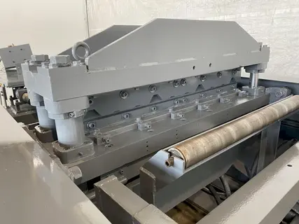 MAKE.................................: B&K SERIAL...............................: 118 MODEL................................: 20UMKII CAPACITY.............................: 20,000 LBS MAX LENGTH...........................: 48" MAX COIL O.D.........................: 60" COIL I.D.............................: 14" - 20" DRIVE MOTOR HP.......................: 3 HP DRIVE MOTOR RPM......................: 1750 DRIVE REDUCTION RATIO................: 60:1 COIL CAR.............................: YES ROLLFORMER: MAKE.................................: B&K SERIAL...............................: 100 MODEL................................: 2-1/2 BU # OF STANDS..........................: 16 ARBOR DIAMETER.......................: 4" ROLL SPACING.........................: 48" HORIZONTAL CENTERS...................: 18" VERTICAL ADJUSTMENT..................: 5" - 10" EQUAL GEARING........................: YES HP...................................: 50 MOTOR RPM............................: 0:1700 SPINDLE GEAR RATIO...................: 1:1 DRIVE HOUSING REDUCTION RATIO........: 7.2:1 BASE TO BOTTOM OF SPINDLE............: 6" RAFTED: 4 SETS OF 4 BRADBURY RAFTS. W.O. 21955 FLYING SHEAR WITH AC SERVO ACCELERATOR MACHINE IS SET UP FOR 36" R PANEL BRADBURY TOOLING W.O. B011484 AMS DIGITAL CONTROLLER |