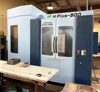 Matsuura HPlus-500 PC2 Horizontal Machining Center 2016 Fanuc 31i Control CT50 Big Plus Spindle 15,000 RPM 245 Tools On 245 Base ATC Full 4th Axis Renishaw NC4 Tool Setter ATS Through Spindle Coolant Cooljet 1000 PSI Chip Conveyor