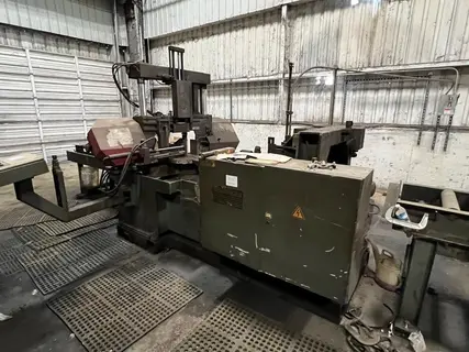 Mitre Cutting :0-60 Degrees Left 0-45 Degrees Right Shuttle Stroke: 0-118 " Single Stroke Cutting Speeds: 75, 140, 220 & 350 FPMPLC Controller W/BBT-20 Operators Terminal Fully Automatic Dual Mitre Programming Fully Automatic Hydraulic Blade Tensioning Rapid Approach Sensor Front Material Clamping Horizontal & Vertical Clamping Feed Carriage W/ Clamp Input & Output Roller Conveyors Side Exit Chip Conveyor Flood Coolant 2 HP AC Hydraulic Pump |