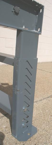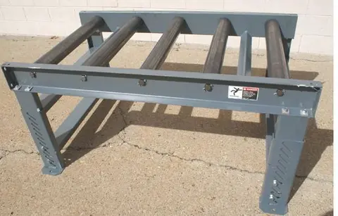60” long Heavy Duty Type II Gravity Roller Conveyor 32” between frames 3.5” diameter rollers 1” pinned hex axle precision grease packed bearings rolls set ¾” low on 12” centers in 6” structural channel frame 12,000 lbs. (evenly distributed weight) capacity height adjustment from 30” – 41-3/4” Options: Rollers set high in frame. N/C 5' drip pan with drain plug. POR Filler plates. POR Fork pockets. POR Powered rollers. POR |