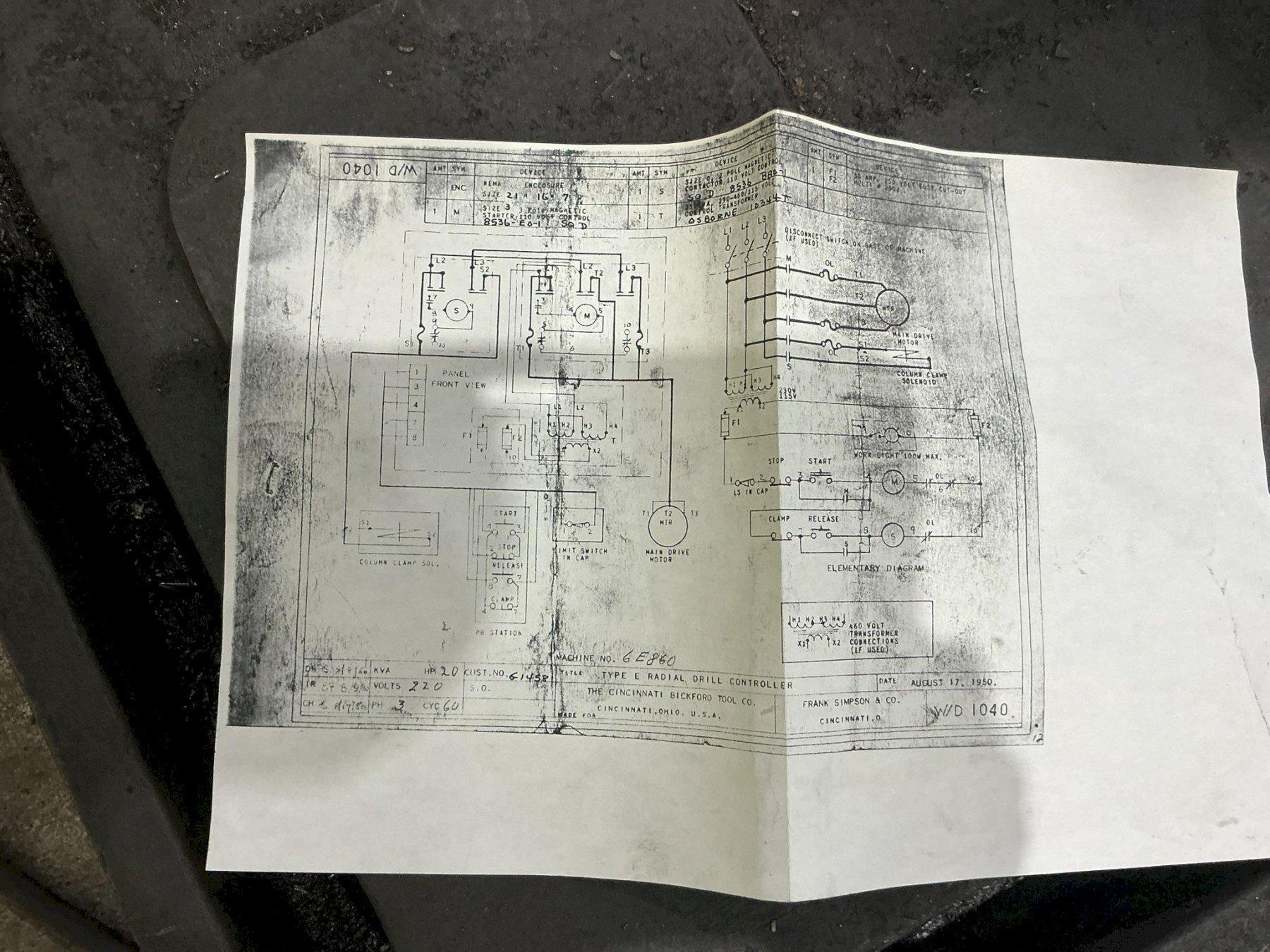 5' X 11" CINCINNATI BICKFORD CHIPMASTER RADIAL ARM DRILL. STOCK # 0418421