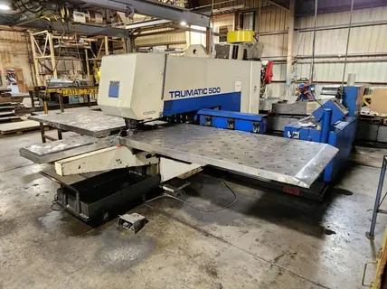 TRUMPF TRUMATIC 500 CNC TURRET PUNCH Trumpf Trumatic 500 CNC Turret Punch 460V, 60HZ, Connected: 17Kva , Control Voltage: 24vdc, Preliminary Fuse: 3x35A, Air Connection: 6bar, Machine Weight: 11050kg; W/ Foot Controller; W/ Bosch Monitor; W/ Computer & Keyboard; W/ Tooling; W/ Trumpf Tool Grinder, DOM: 1995 |