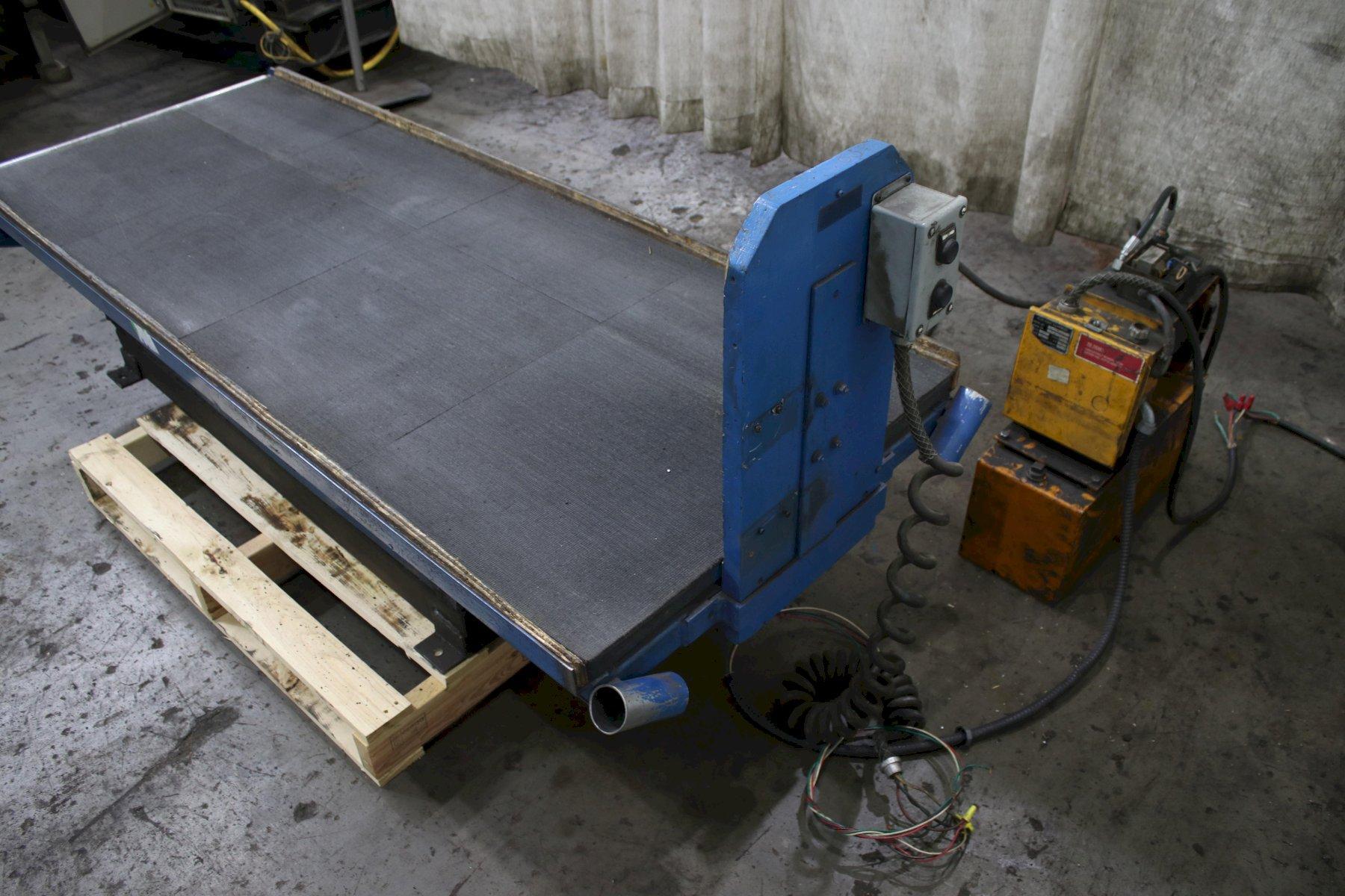 SERIAL ......................... 8150082 MODEL .......................... FS1/24X48 CAPACITY ....................... 1000 LBS AREA OF TABLE TOP .............. 78" X 30" MAXIMUM HEIGHT OF TABLE ........ 42" MINIMUM HEIGHT OF TABLE ........ 14" LIFT ........................... 28" SINGLE CYLINDER ................ YES HYDRAULIC MOTOR, HORSEPOWER .... 3 |