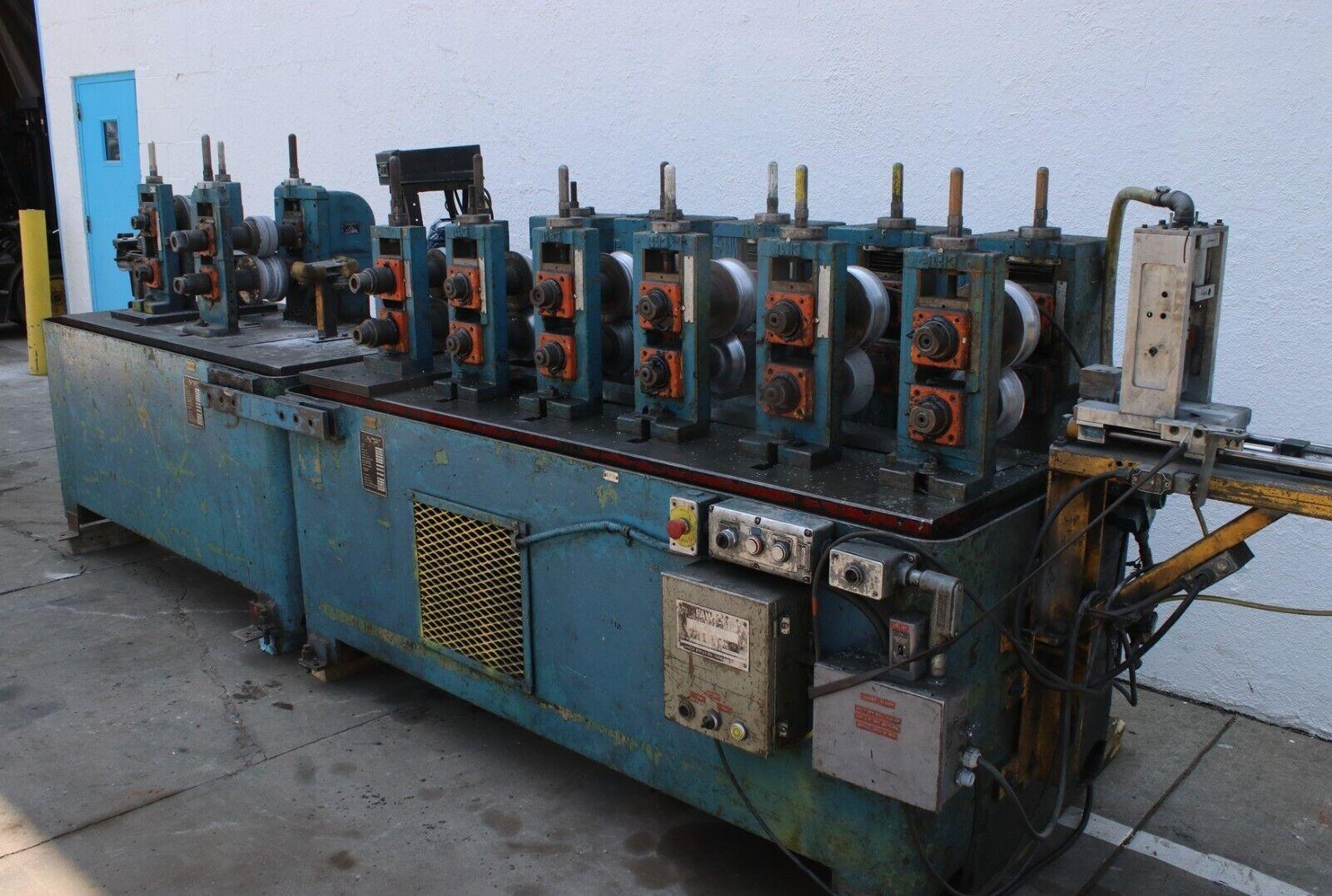 SERIAL .............................. 113 MODEL ............................... 1-1/2B NUMBER OF STANDS .................... 6 ROLL SPACE .......................... 10" DIAMETER OF ARBORS .................. 2" DISTANCE BETWEEN STANDS ............. 12" VERTICAL ADJUSTMENT ................. 5" TO 7-1/2" BASE TO BOTTOM OF SPINDLE ........... 5-3/4" KEYWAY SIZE ......................... 3/8" PNEUMATIC SHEAR CUTOFF .............. YES MOTOR ............................... 10 HORSEPOWER ** TOOLING ON MACHINE MAKES 1-1/4" DRYWALL CORNER BEAD |